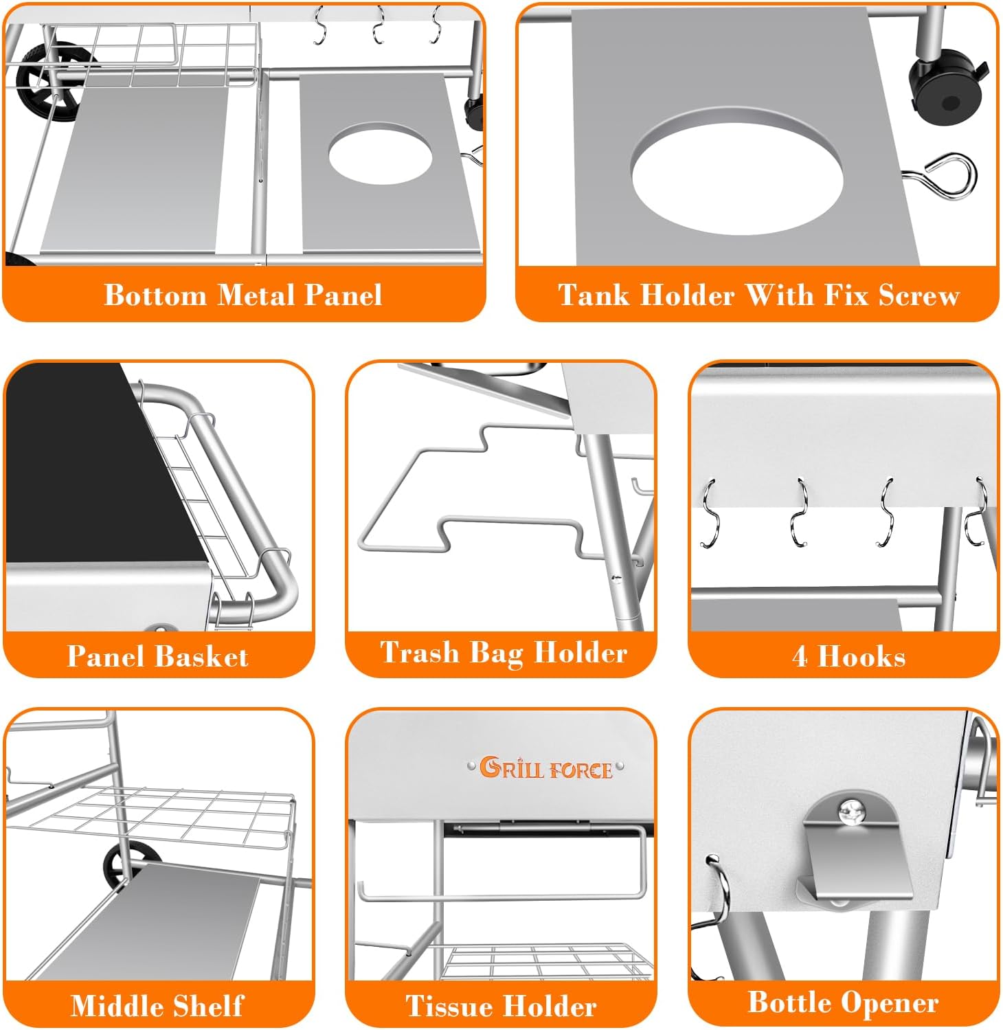 - 【Sturdy and Durable Construction】The outdoor cooking table is crafted from high-quality metal with a heavy-duty steel bottom shelf and legs, ensuring long-lasting durability.Our grill table is more durable, and not easy to deform, or crack compared to plastic and wooden tables, making it suitable for long-term use
