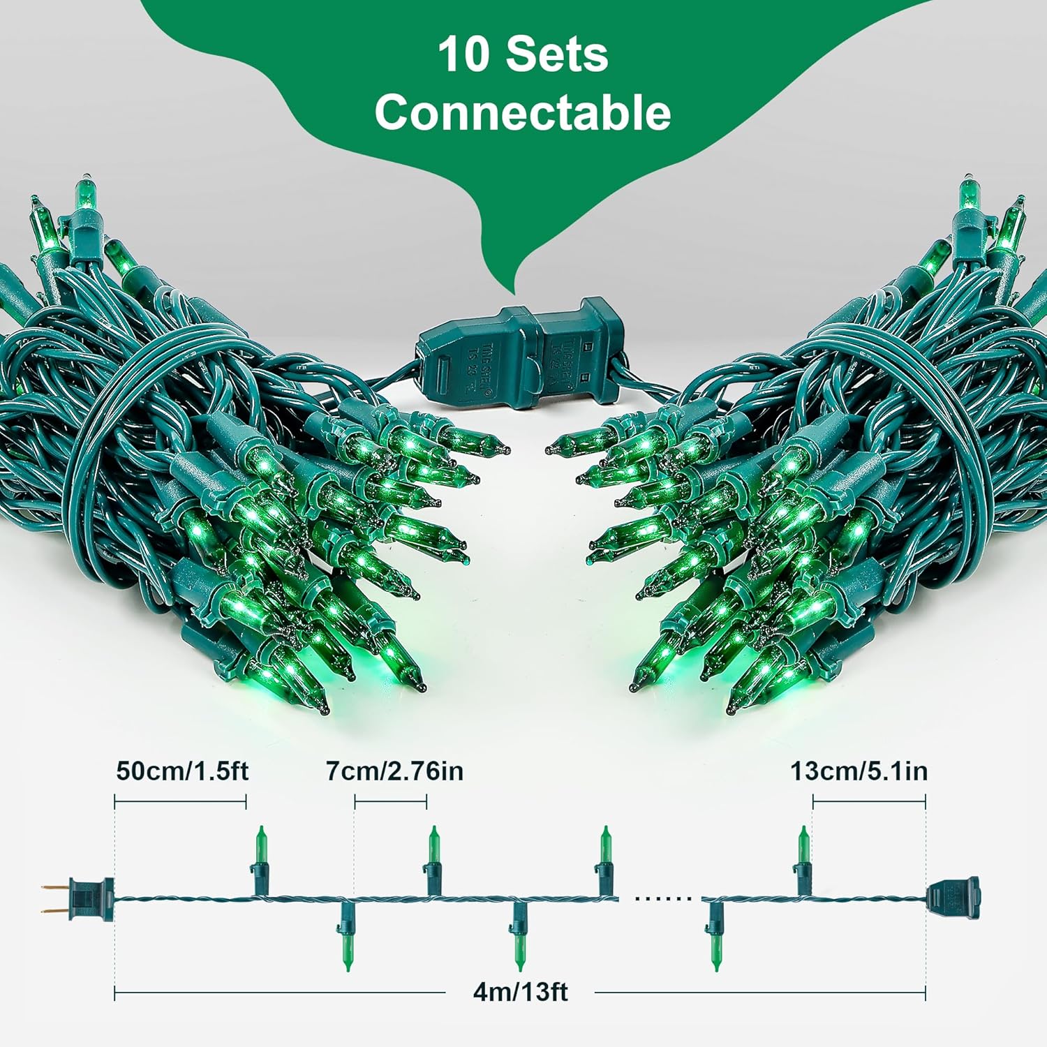 - 🌲Connectable Christmas Lights: Green mini string lights can be End-to-End connected. Up to 10 sets,lighting range can be extended to 130ft. With this convenient function,you can do the DIY decoration on any occasions: shopping street, Christmas, Halloween, St. Patrick's Day,music festival, birthday party, graduation party, garden, deck, bedroom.