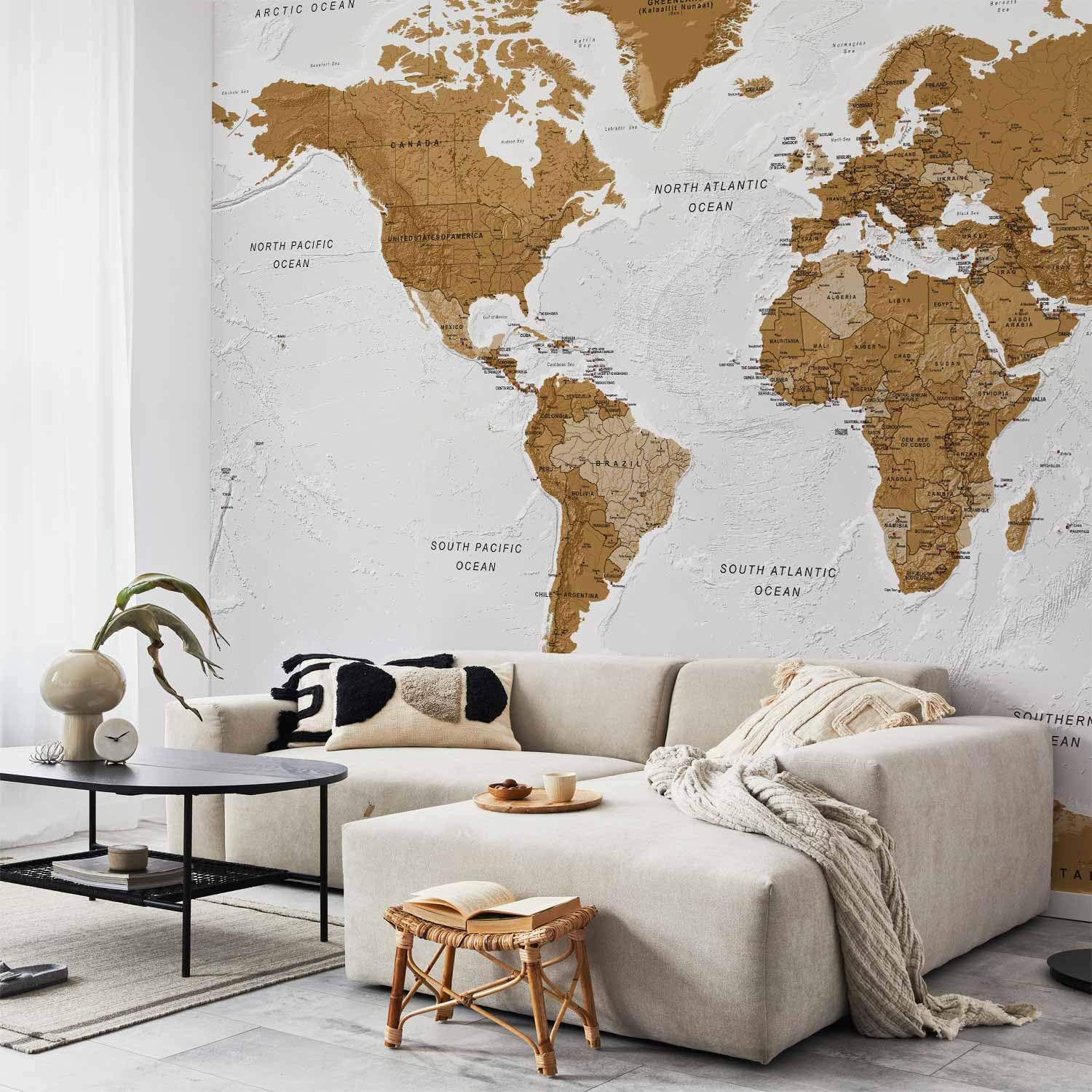 artgeist Premium Wall Mural World Map 177x124 in - XXL Non-Woven Wallpaper Fleece Wall Decor Photo Print Picture Image Design Home Map of The World k-A-0093-a-a