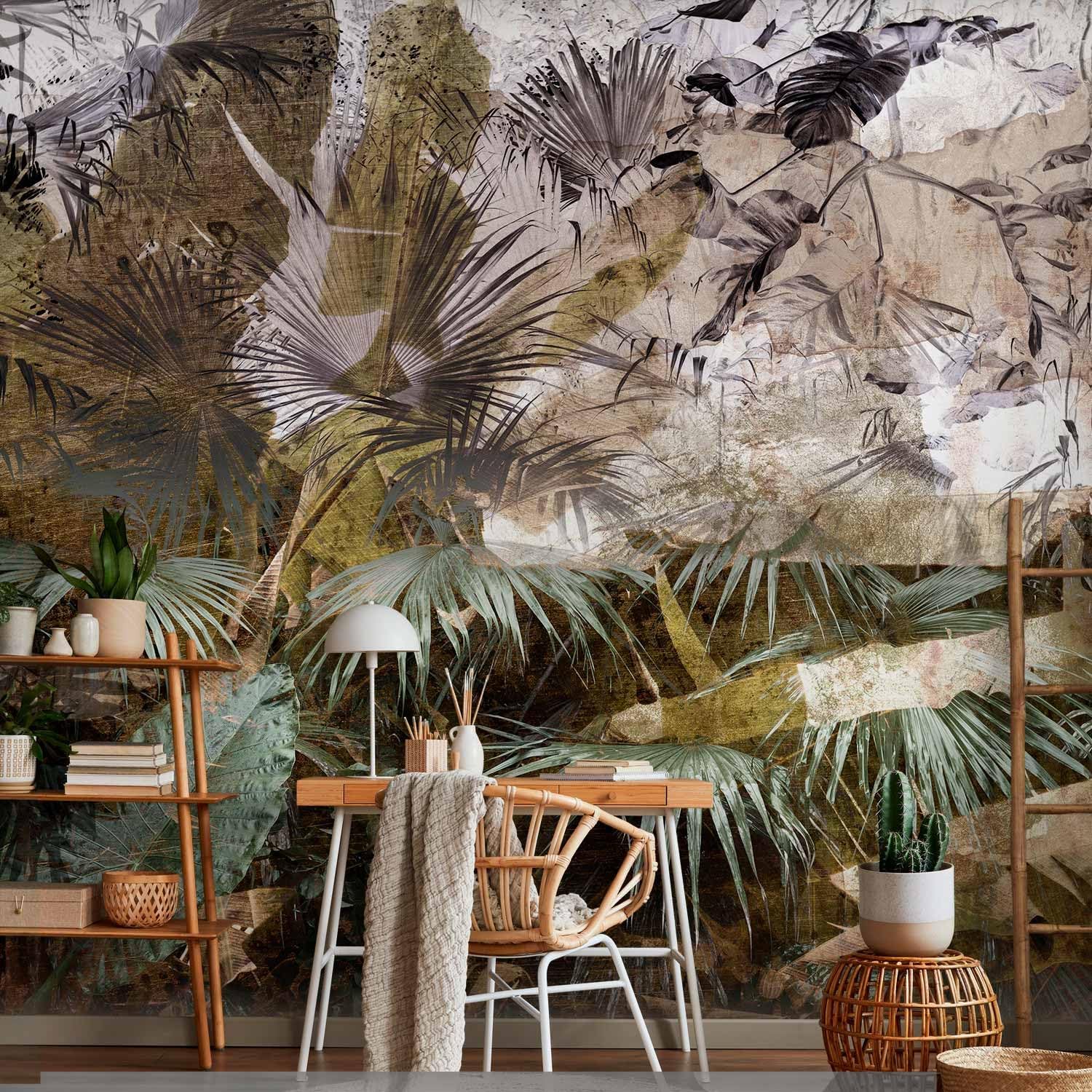 artgeist Premium Wall Mural Tropical Leaves 118x83 in - XXL Non-Woven Wallpaper Fleece Wall Decor Photo Print Picture Image Design Jungle Nature Palm Leaves Like Painted b-C-0789-a-a