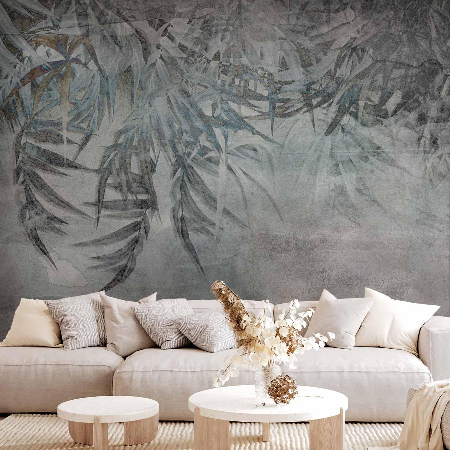 artgeist Premium Wall Mural Leaves 138x101 in - XXL Non-Woven Wallpaper Fleece Wall Decor Photo Print Picture Image Design Palm Leaves Concrete Nature Grey b-C-10103-a-a