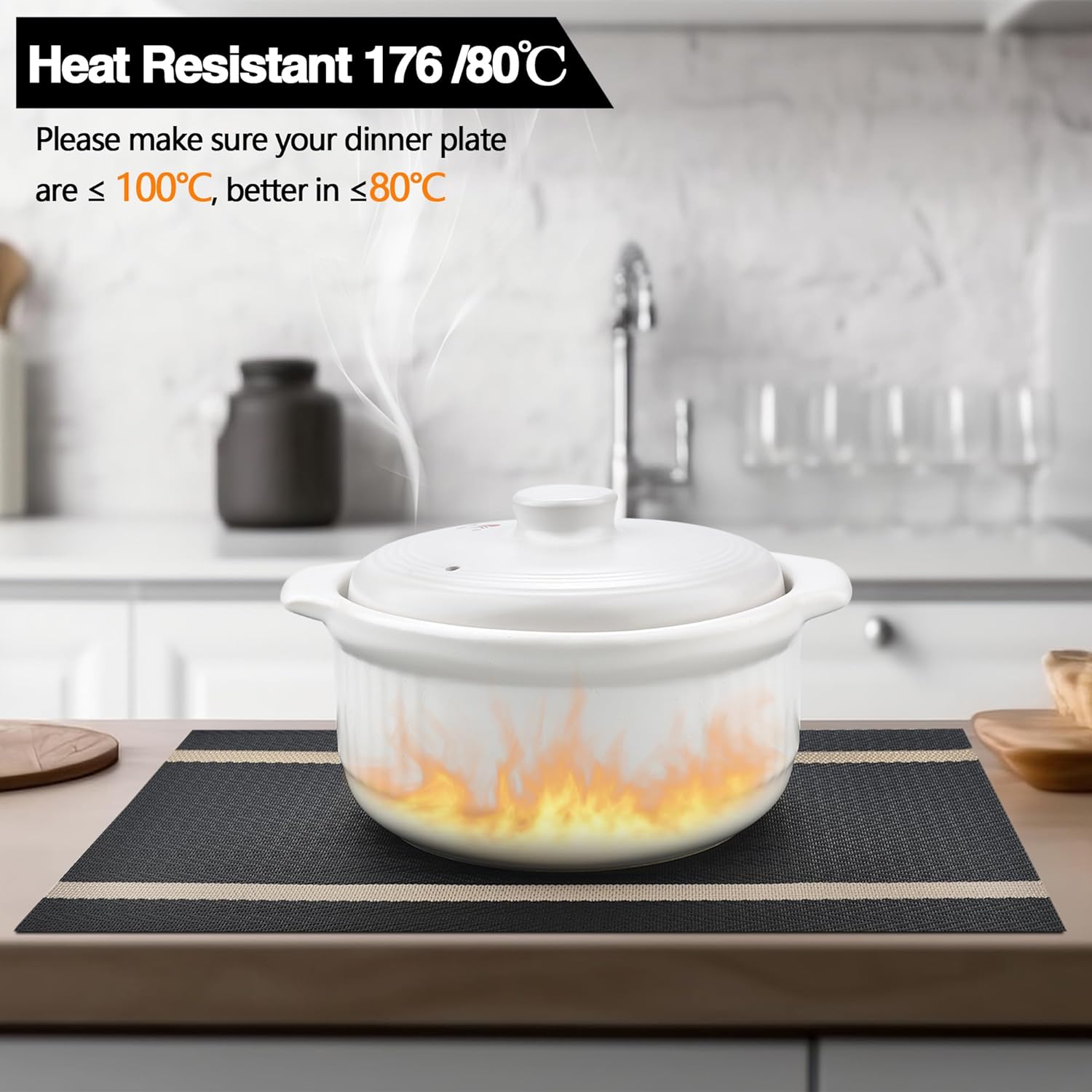- Heat Resistant: Please make sure your dinner plate are β€ 100β, better in β€80β. It can prevent the table from slipping and scalding the countertop. These beautiful stylish vinyl place mats to add more fun to your dining table