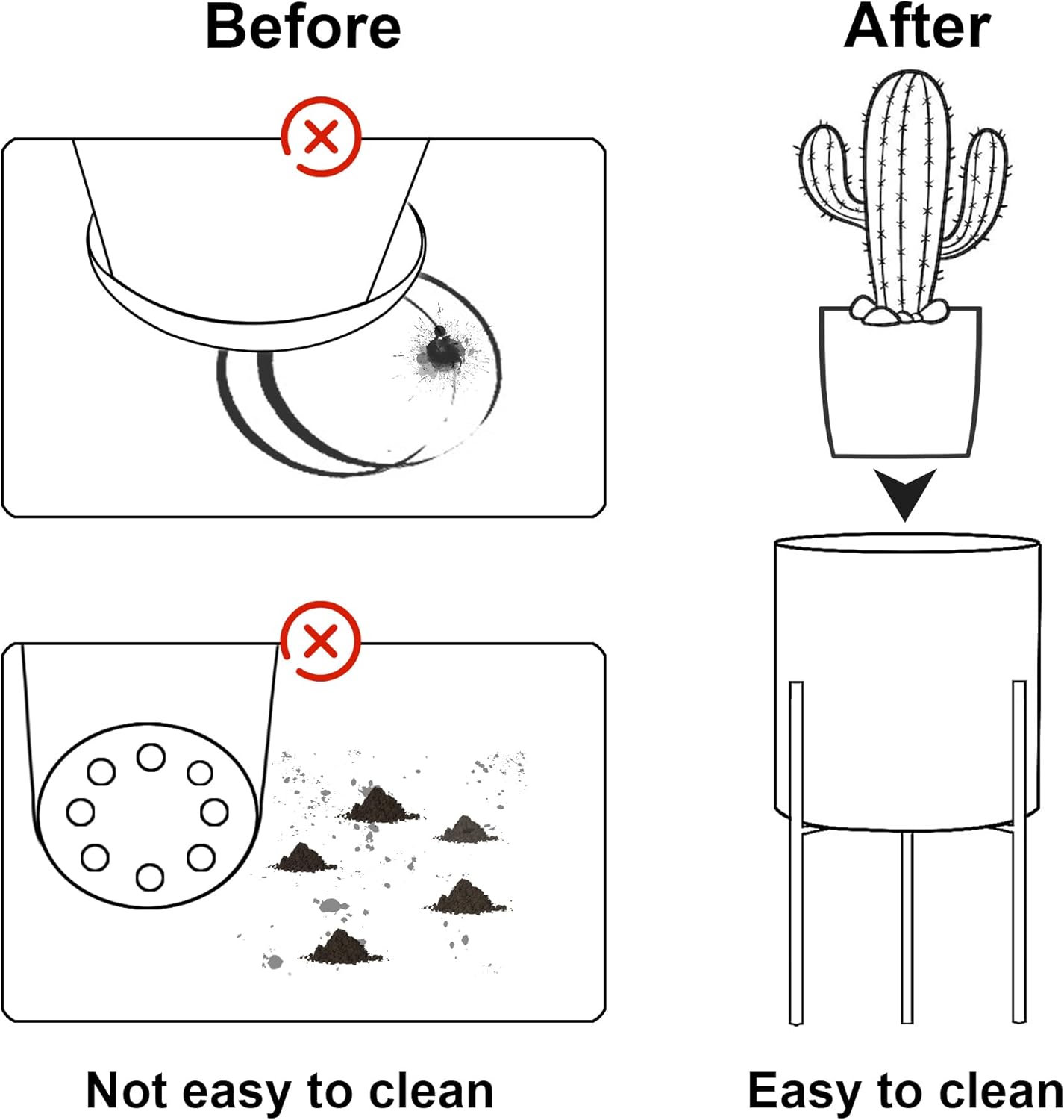 - 【Modern Planter Pots】The black matte planter pots with stand is perfect for growing most home and office plants such as parlor palm, dill, peace lily, snake plant, aloe vera, adding natural beauty and adding vitality to life.