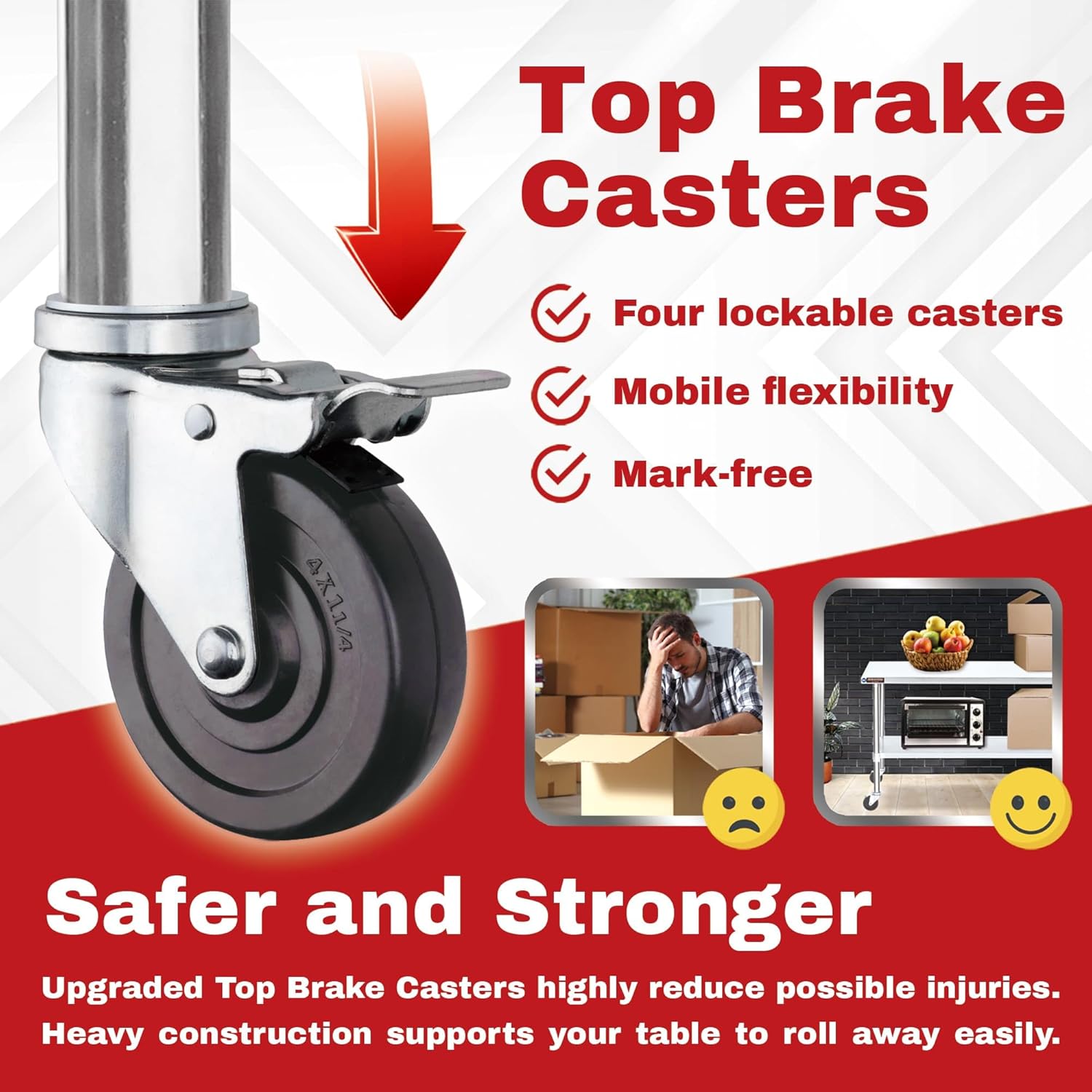 - Move freely: DuraSteel work table cart could be mobile to everywhere w/o effort. Upgraded top brake makes it safe and stability. *Suggest not put more than 150 lbs on the surface for rolling smoothly