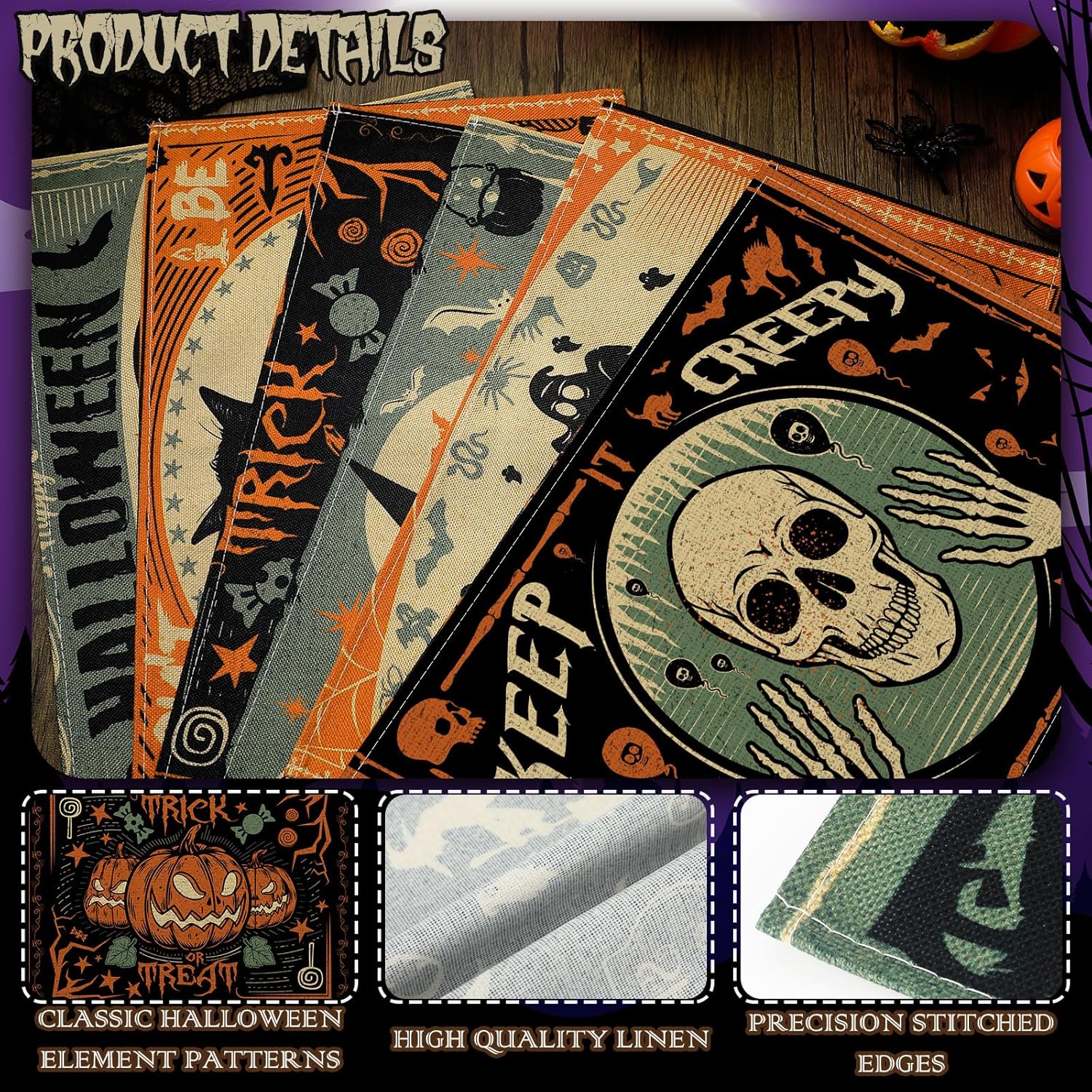 - Halloween Design: our Halloween table mats have a beautiful design of Halloween style, different from other placemats, spooky design style will add a scary holiday feeling to your home, but also bring you more choices for Halloween home decoration