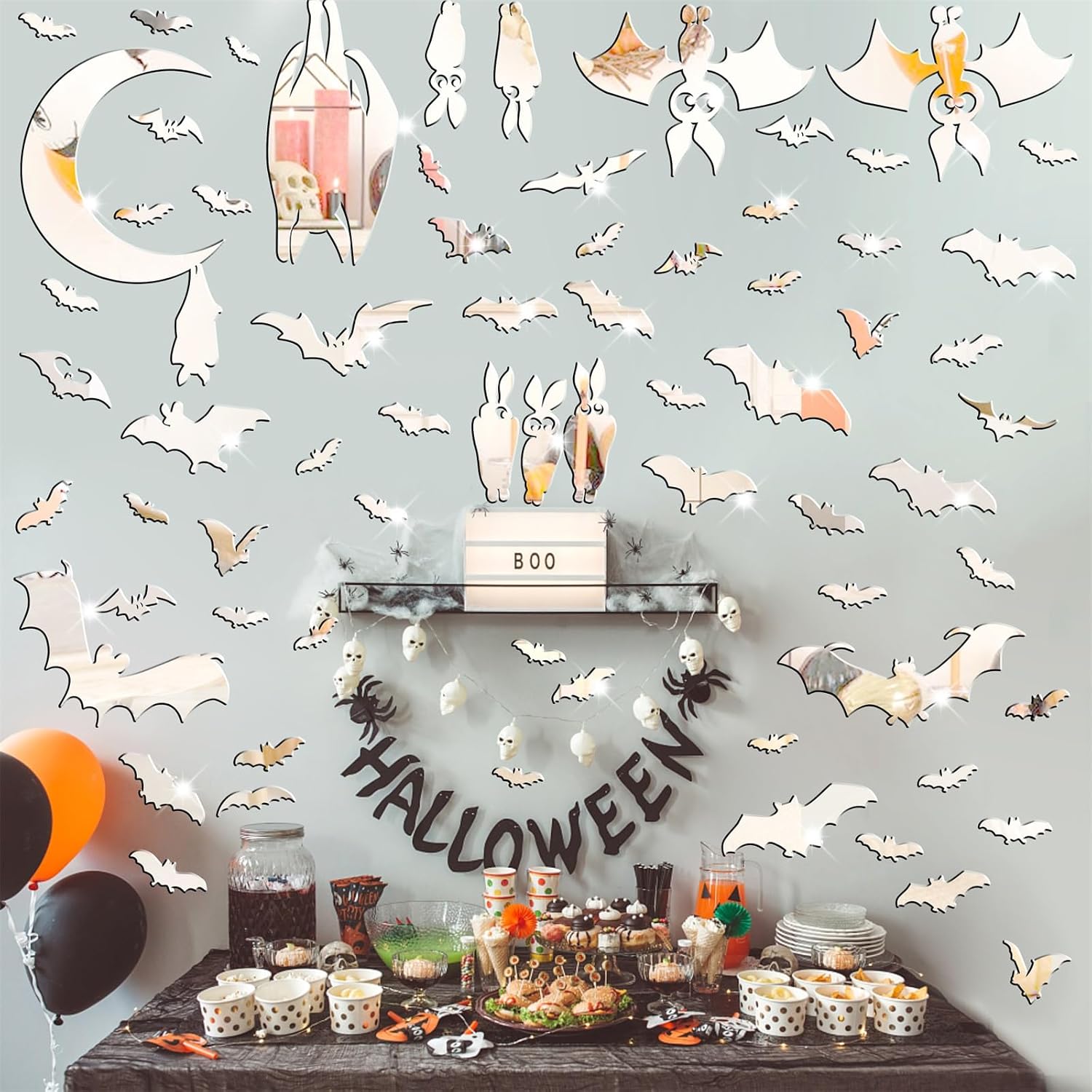 - Halloween bats acrylic mirror wall decals are removable without sticky residue.