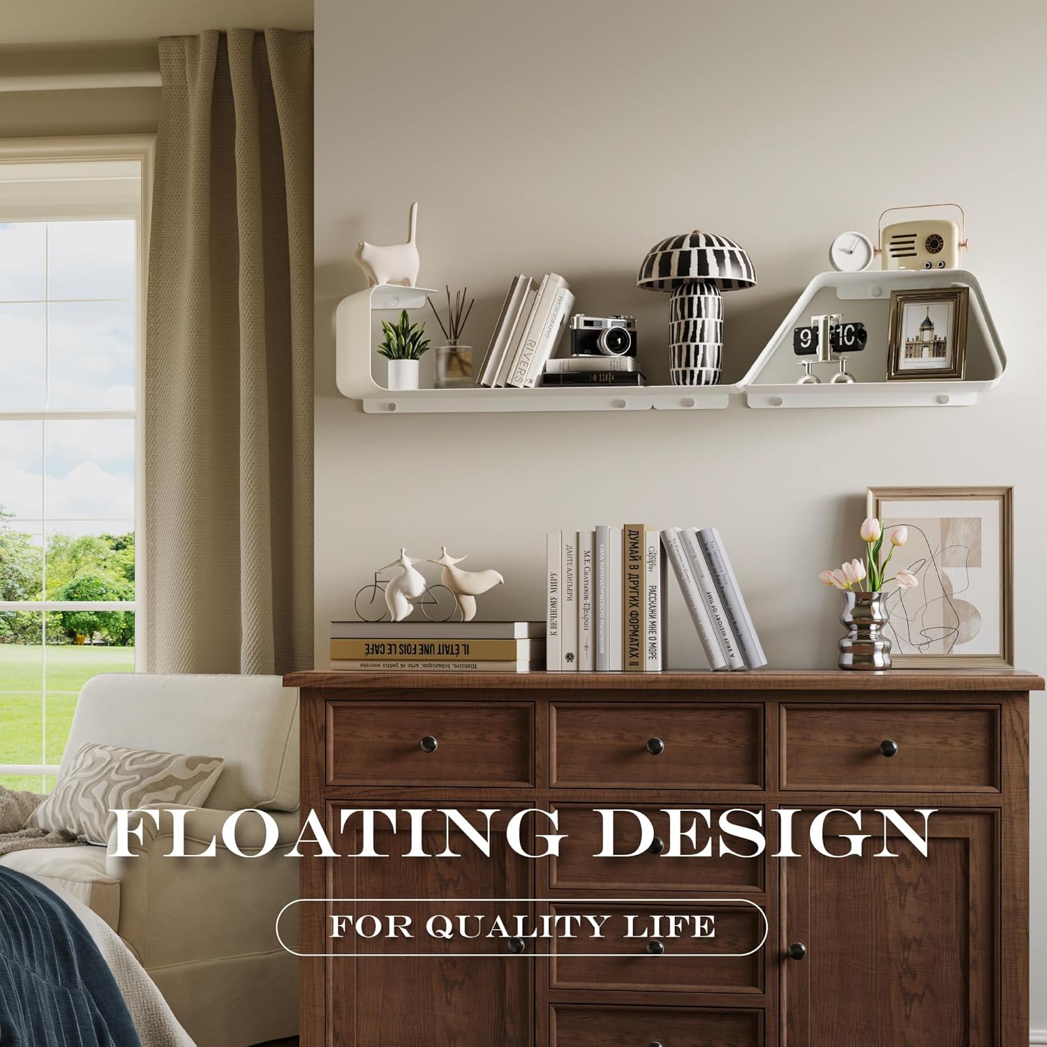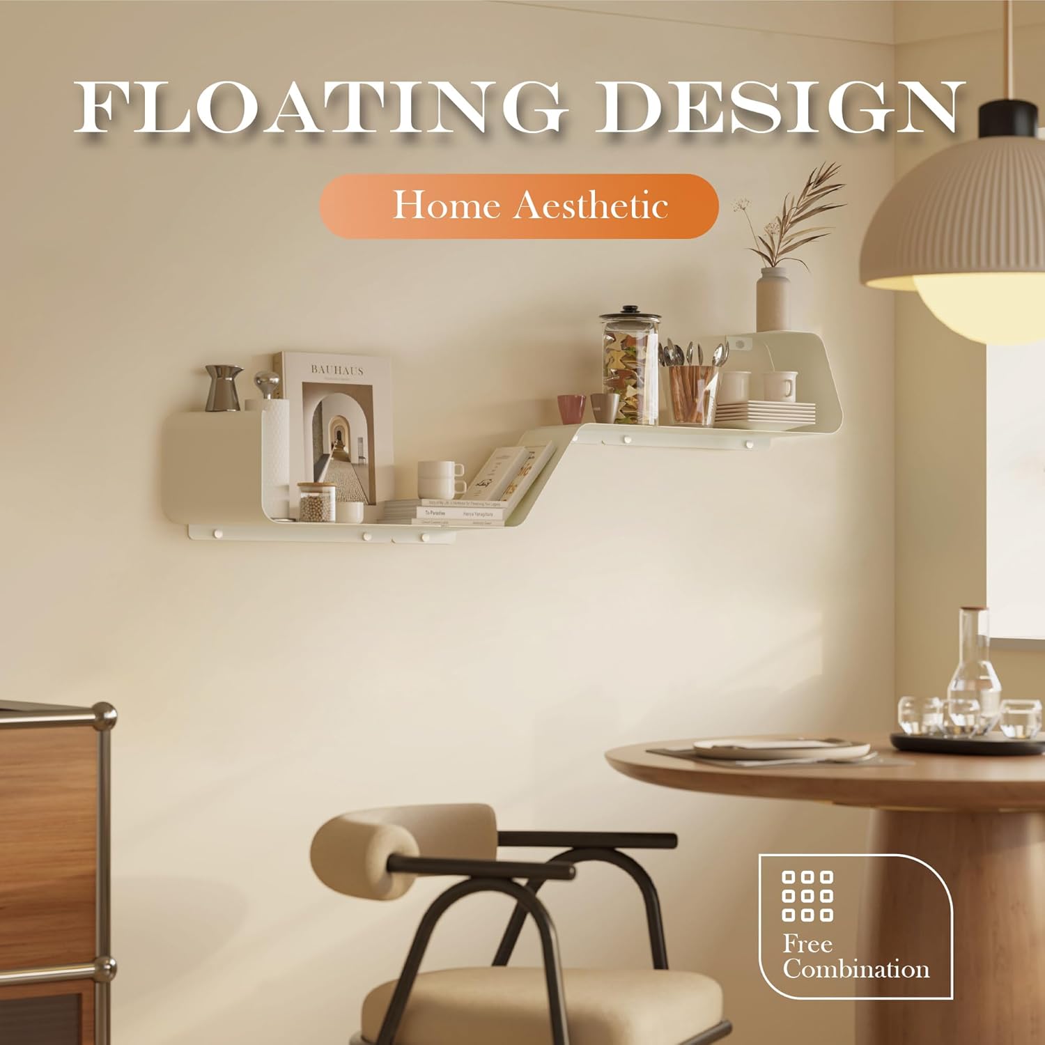 - Multifunctional Floating Shelf: This unique piece offers an inventive design flexible configuration to fit any size of wall space. Transform wasted wall space into a spacious storage area. These shelves, a bedroom showcase for prized items, a living room display for photos, a bathroom organizer for toiletries, or a kitchen rack for spices and so on. It doesn't just offer organization, it elevates your living space, redefining the aesthetic of your home.