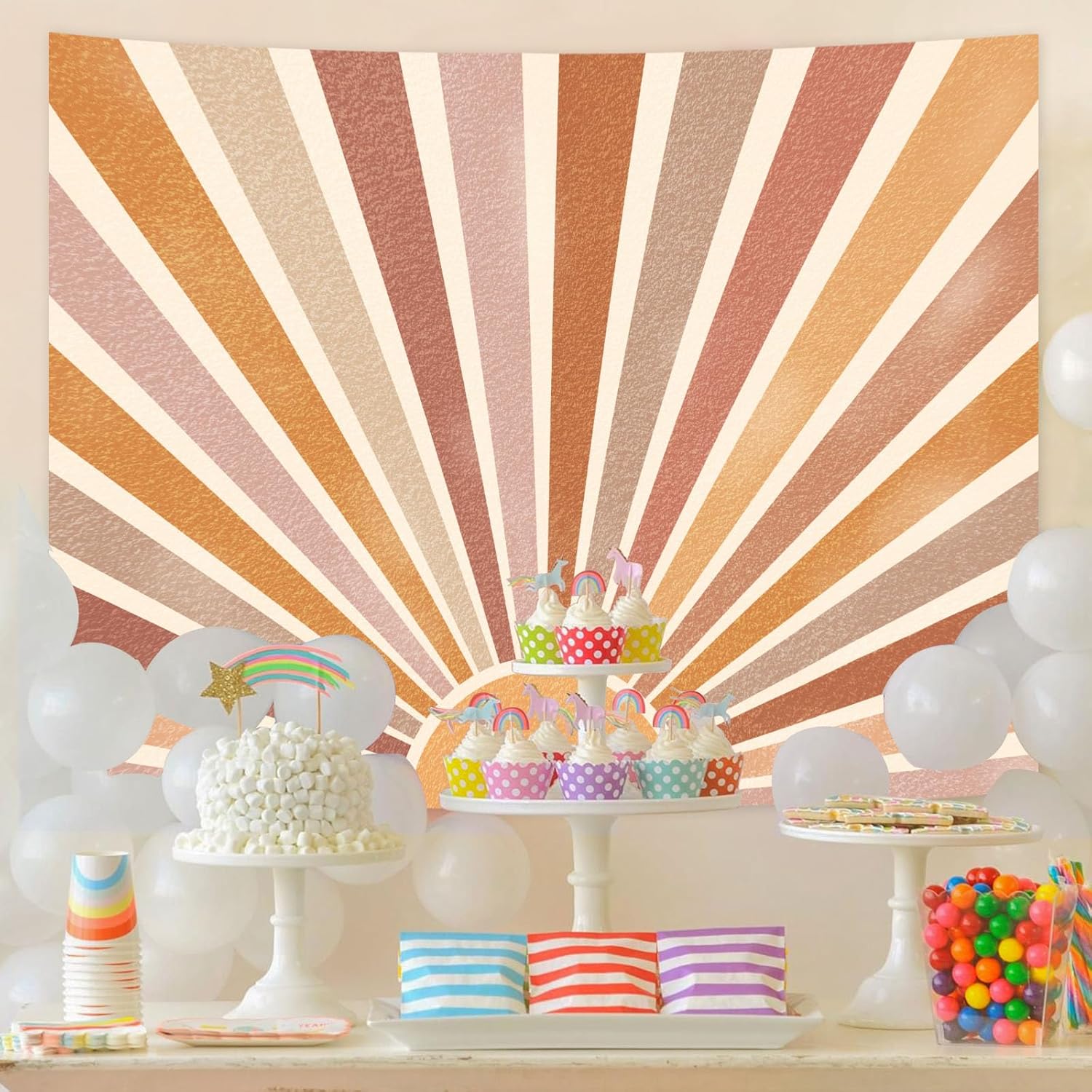 Kanuyee Retro Burning Sun Tapestry Wall Hanging, Vintage 70s Abstract Geometric Sunrise Tapestries for Bedroom Living Room Backdrop 36×48 inch