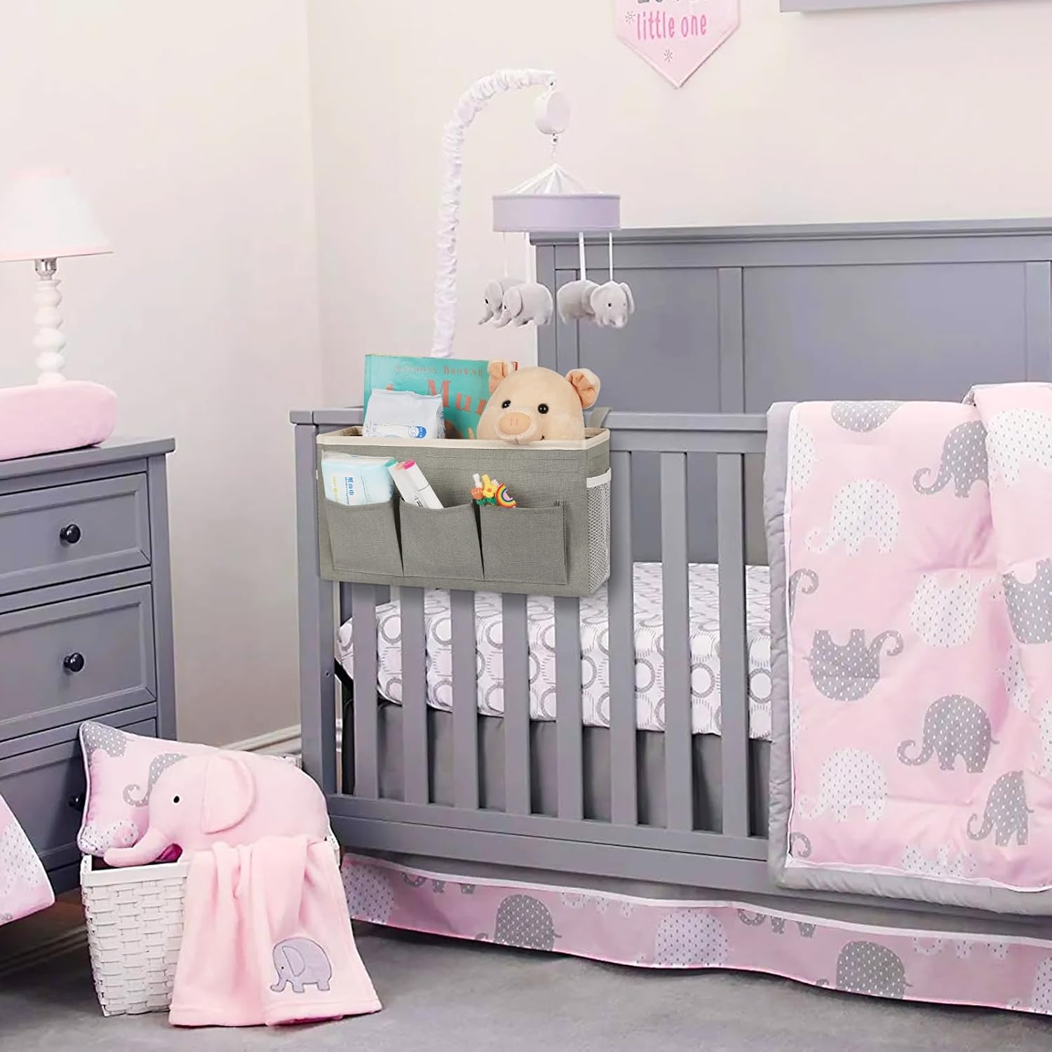 - ăStrong Bearing CapacityăIn addition to the metal hook, the bedside organizer also added adjustable straps on both sides to help the bedside caddy to be additionally fixed in place, bottom cardboard added to hold basket shape, enduring enough to bear heavy weight and prevent sagging.