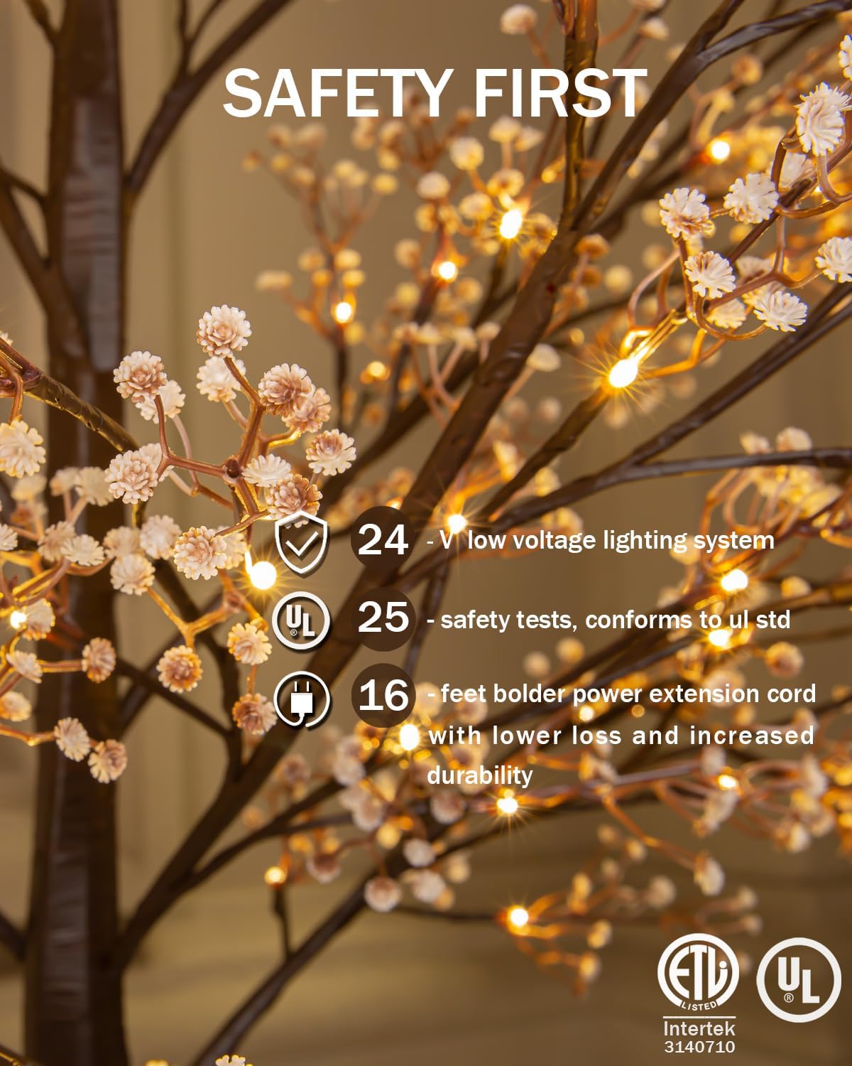 5ft Lighted Baby's Breath Tree with 128 Warm White LED Lights for Holiday Decor - Dimmable, UL Certified, Waterproof - Ideal for Indoor and Outdoor Decoration