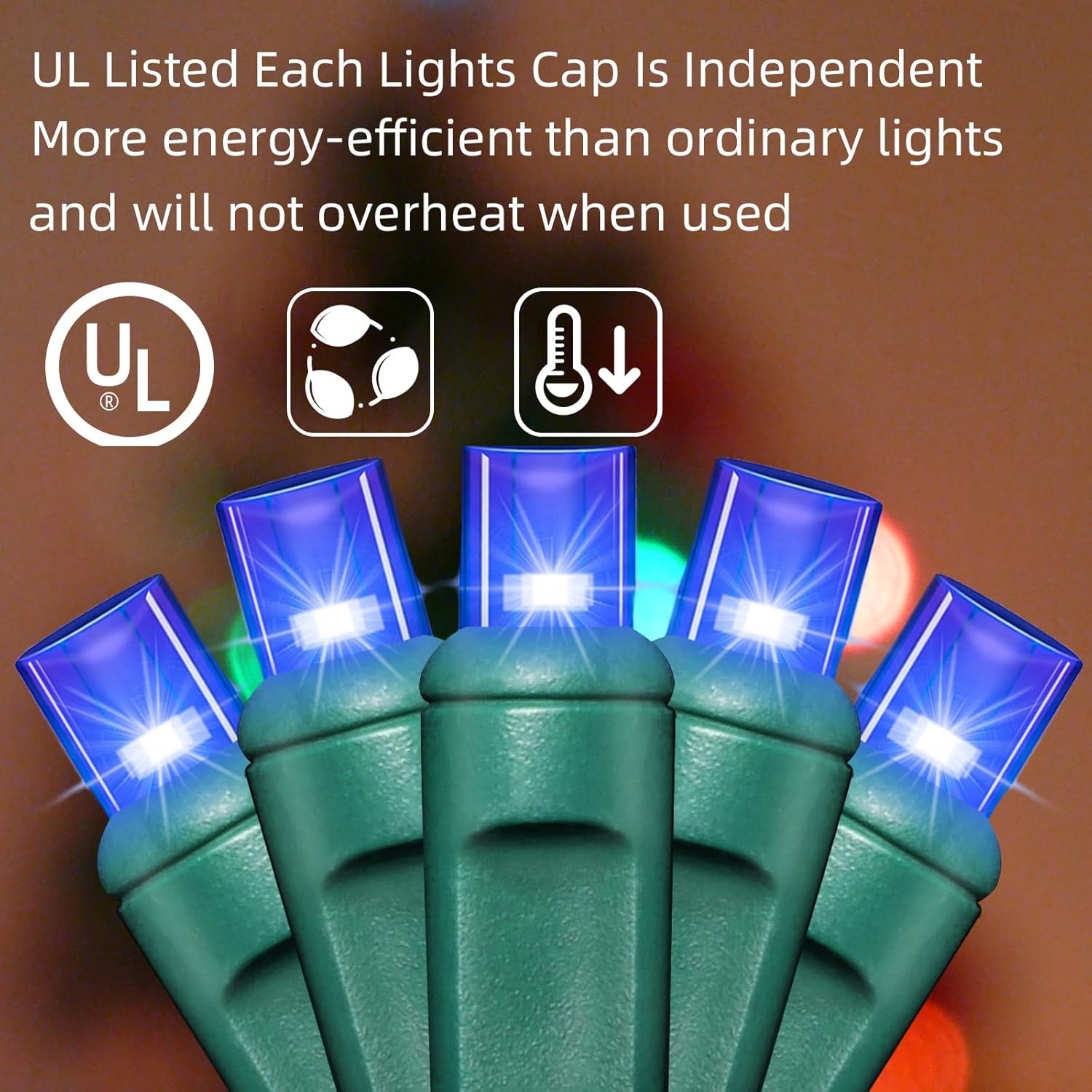 50LED String Lights,LED Christmas Lights,6" SPACING,Green Wire,Blue Colour,Commercial Grade