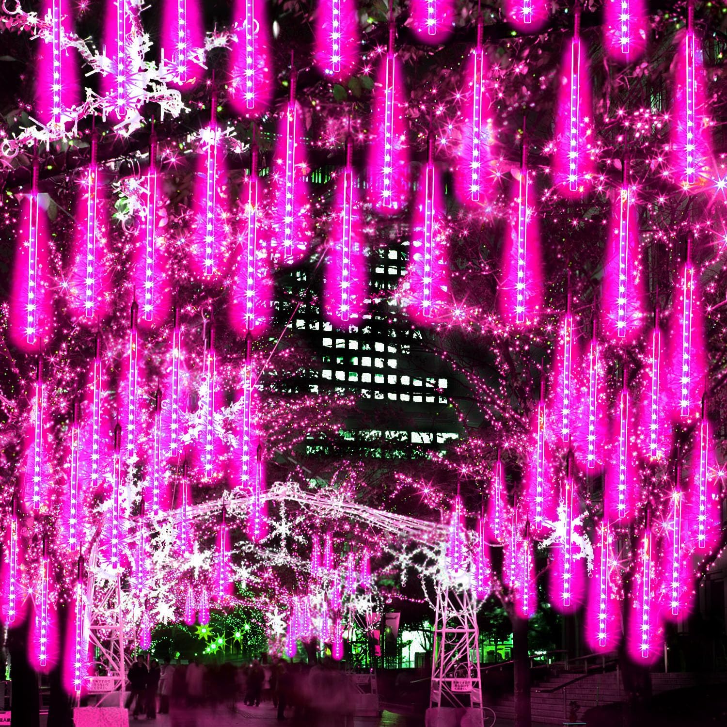 Christmas Meteor Shower Rain Lights, 10 Tube 12 Inch 240 LEDs Icicle Outdoor Raindrop for Xmas Halloween Wedding Party Tree Holiday Decoration, Pink
