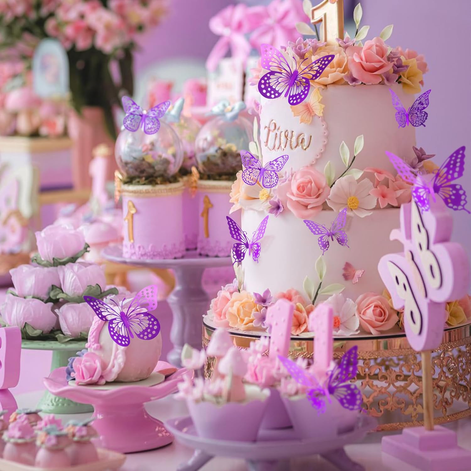 SAOROPEB 3D Butterfly Wall Decor - 48 Pcs, 4 Styles, 3 Sizes - Purple Butterfly Decorations for Birthday Parties, Removable Stickers
