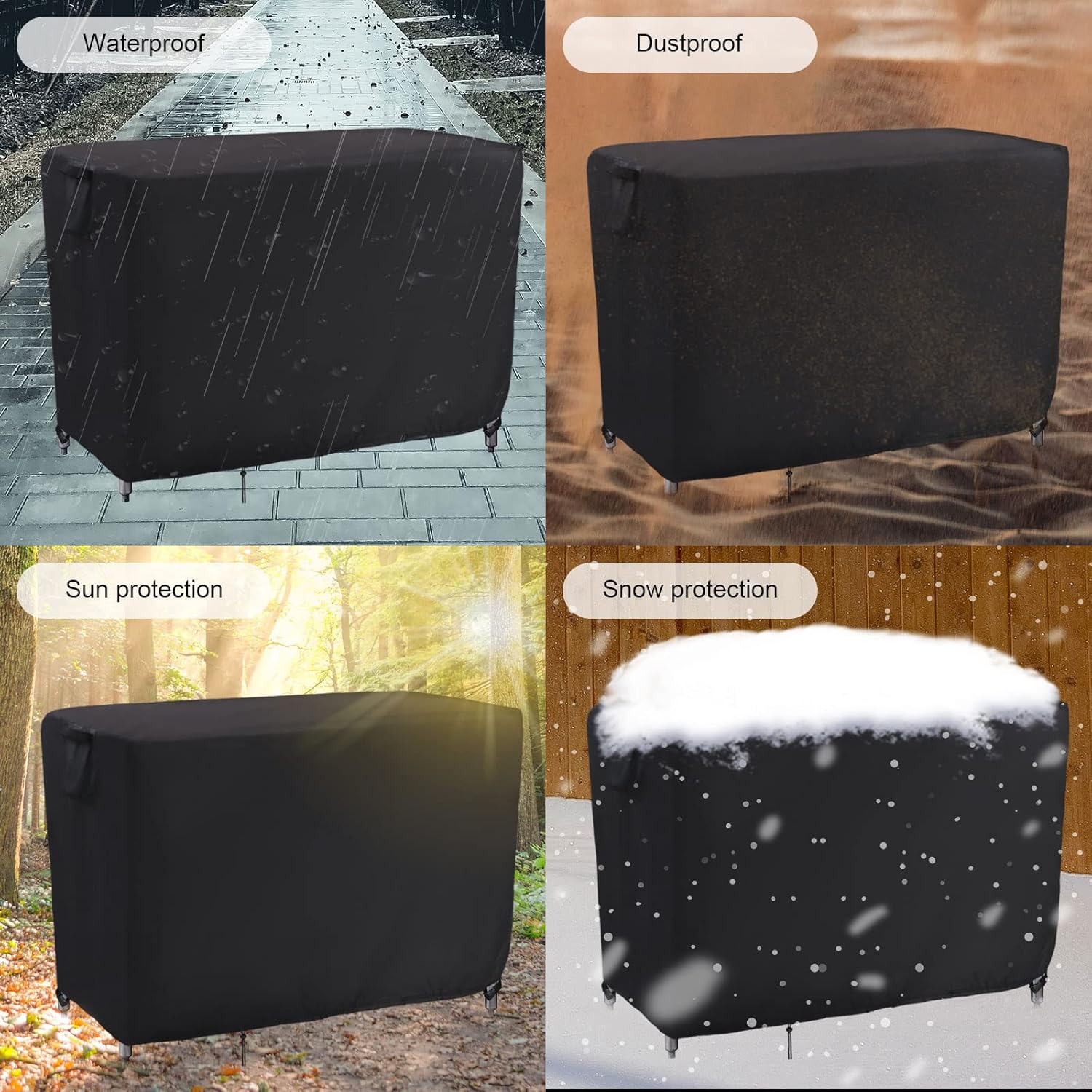- Waterproof Material : The outdoor metal table cover is made of 420D Oxford fabric, lined with waterproof silver plated coating, with extra waterproof strips at the tight seams to prevent water from seeping in from the seams, keeping the furniture dry and clean.