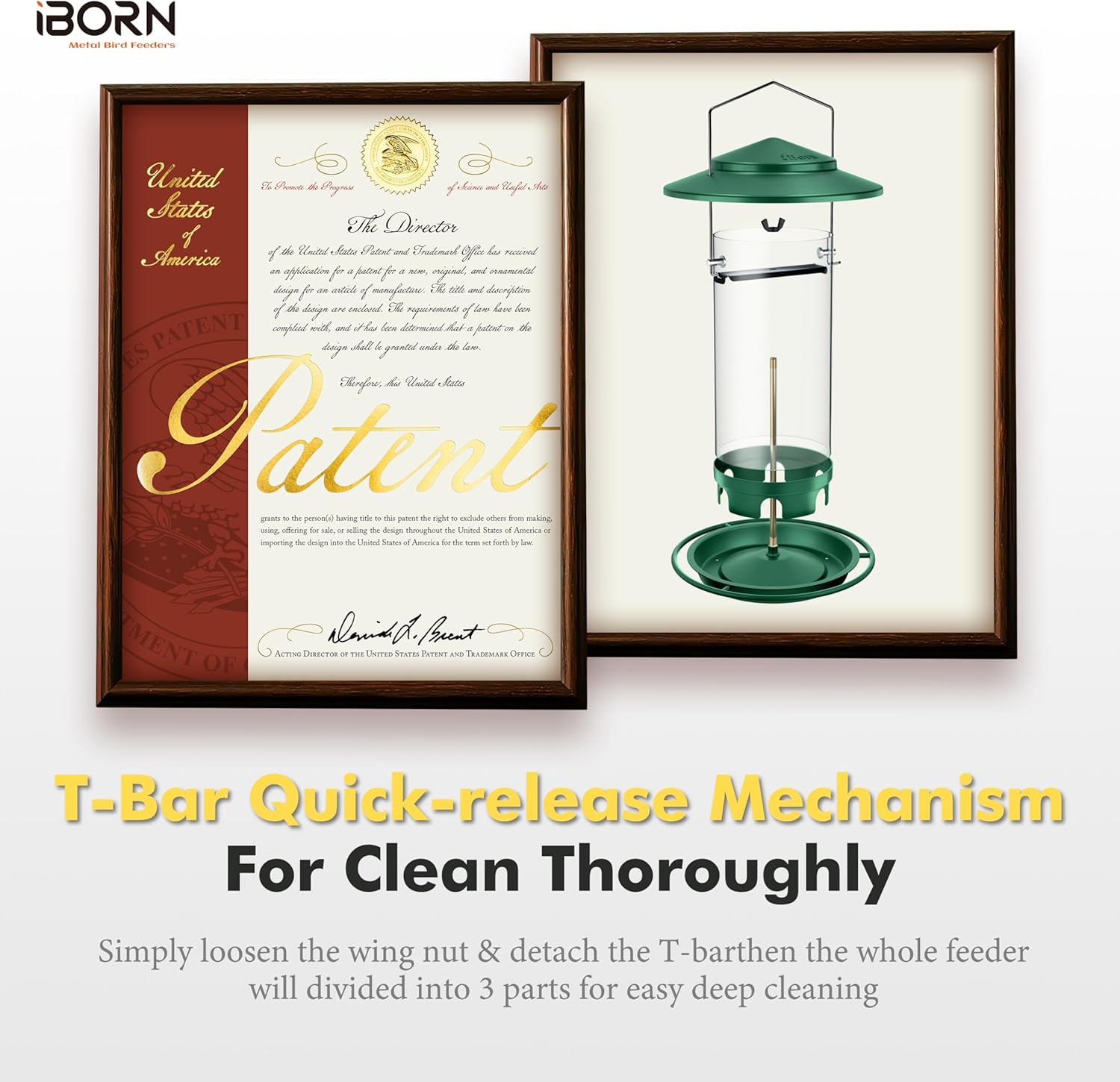 - 【2.2lb Large Capacity&Port Control Seeds Flow,Fill Once a Week】iBorn Large Capacity Bird Feeders For Outdoors Holds up to 2.2lb of seed,reduce the number of regular fills.With right size of each port control seeds flow into the tray.Reduce excess seeds waste and make it easier to fill once a week.