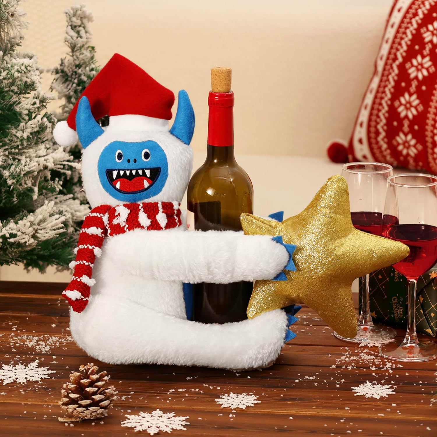 Bigfoot Snowman Christmas Tree Topper Decorations with Glitter Star Xmas Ornaments Home Decor 3D Wreath Attachment Winter Holiday Festive Gift Fits for Small 3-4ft Tree Fabric