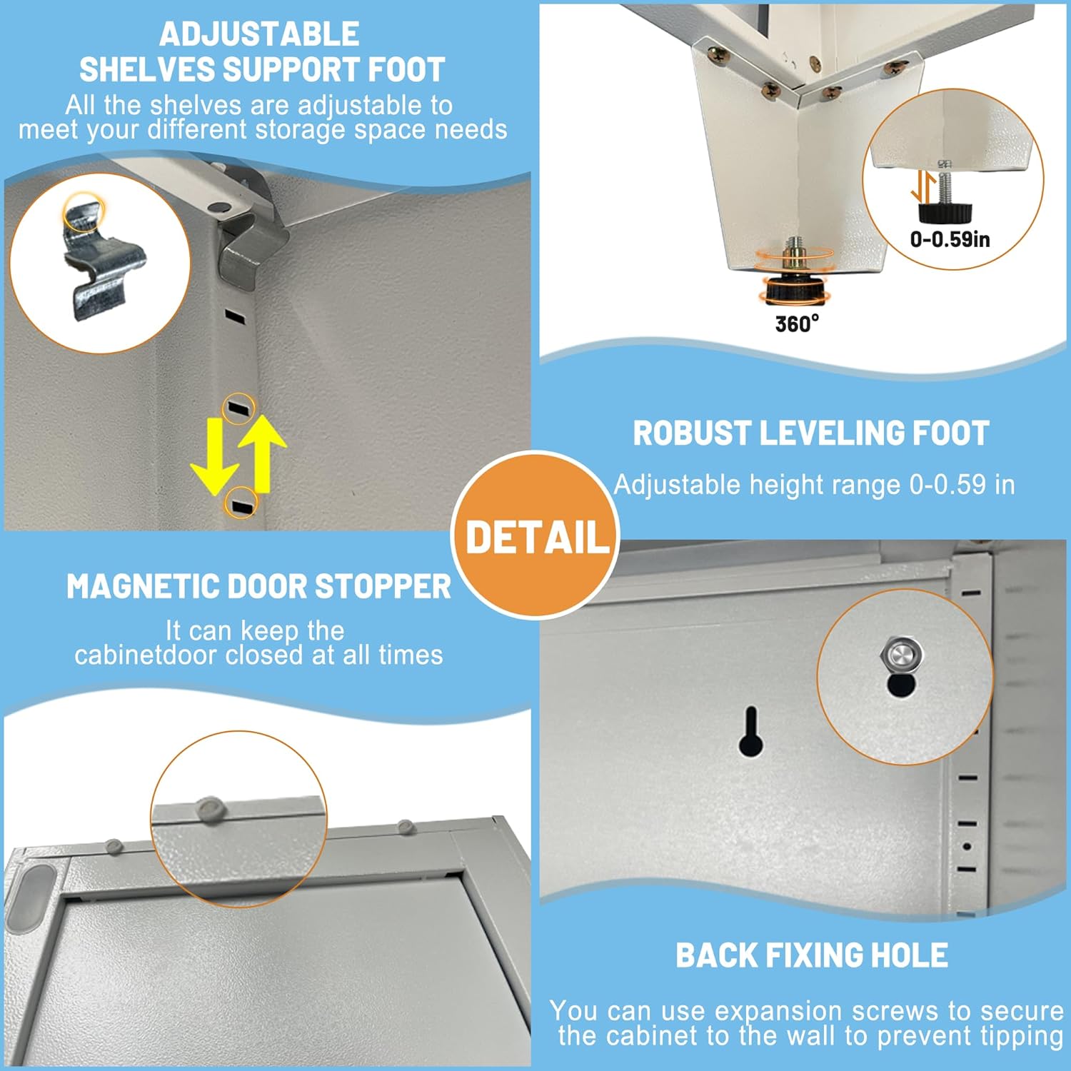 - SECURITY PRACTICAL DESIGN: Pantry cabinet is equipped with 3 adjustable shelves to meet your different needs. 2 pre-holes on the back of food pantry cabinet, help cabinets be mounted to the wall, prevent tipping.