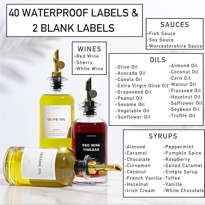 - Oil-Resistant Labels Included: Every set includes 40 waterproof labels that stay stain-free. These labels are reusable multiple times and peel off cleanly without leaving any residue.