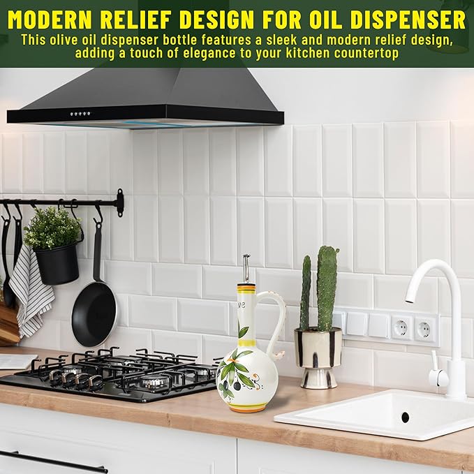 - Make It A Gift: Whether you’re looking for a housewarming gift or valentine’s day gift to wow and impress, our ceramic olive oil container dispenser has you covered. It makes a unique and thoughtful gift for weddings, birthdays, anniversaries, housewarming parties, and more