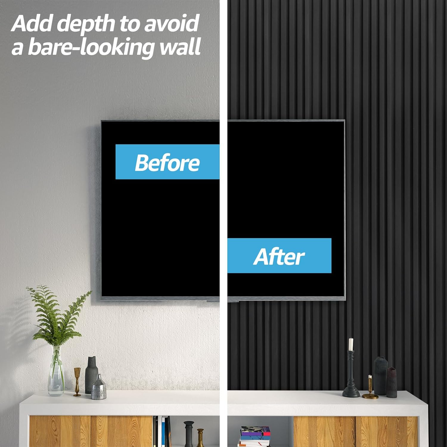 Art3d WPC Slat Wall Panels, 8-Pack 108 x 6 Inch 3D Wall Accents for Interior Wall Decor, Living Room, Bedroom, Black