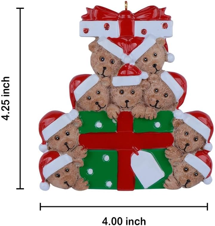 Personalized Bear Family Christmas Ornament 2024, Family of 9 Bear with Gift Box Ornaments for Christmas Tree, Personalized Bear Christmas Ornament, Unique Keepsake Gift for Big Family, Grandkids