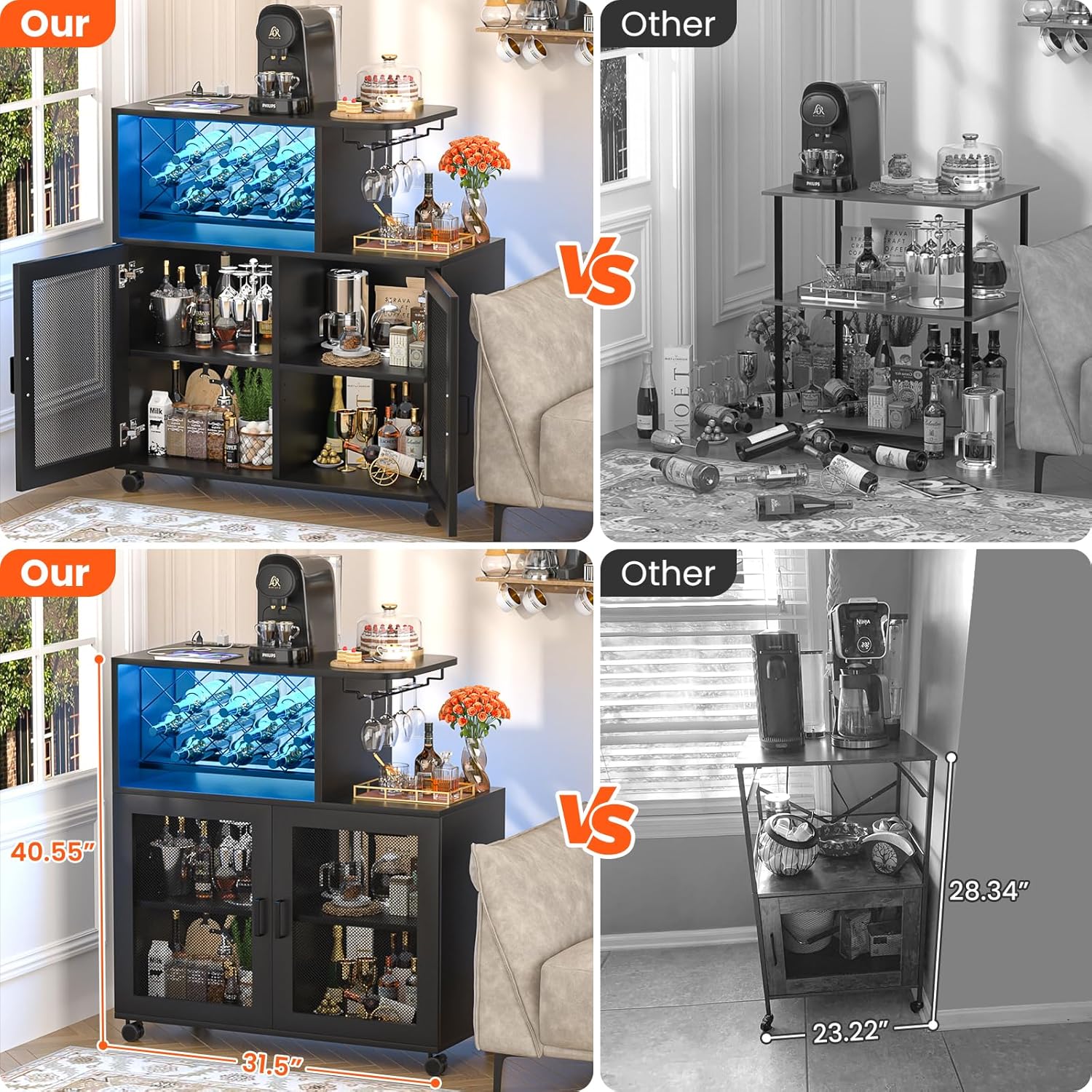 - 🍾Small Wine Bar Cabinet: Compared to other bar cabinets with a height of 28.34 ", the Girapow small bar cabinet with a height of 40.55" is ideal for placing next to the sofa as a coffee bar cabinet or as a mini home bar in the living room. There are a total of 5 wheels at the bottom, which improves stability while making it easier to move the cabinet.
