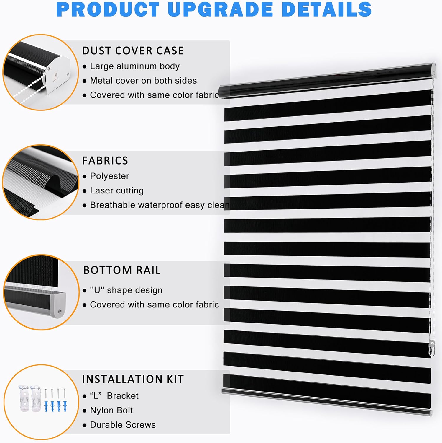 - Zebra Blinds for Windows with a premium polyester fabric - High-End Quality - Easy to install - Easy to clean,Black Color 60 inch Width.
