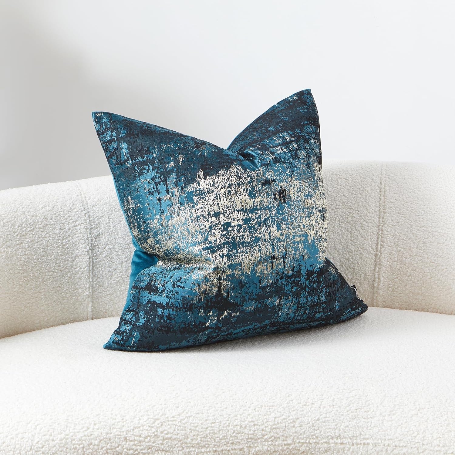 - Premium Jacquard & Velvet Pillow Cover : Crafted with luxe 70% polyester 30% viscose jacquard weave in Teal & Gold - a sophisticated blue-green hue with woven metallic gold threads that create a luminous, jewelry-like glow. The reverse features 100% polyester cream beige velvet in sumptuous cloud-soft texture. Two looks in one-Instantly elevates sofas, beds, or accent chairs from coastal cool to metropolitan glam.