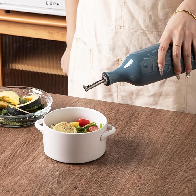 - Durable and Precise Pouring Control - The olive oil bottle fired at high temperatures, to form a smooth glazed surface, strength and durability. The carefully designed spout that allows for easy pouring without any messy drips or spills.
