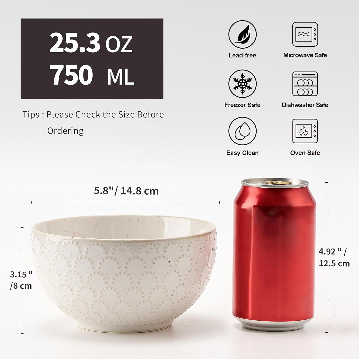 White Ceramic Bowls Set of 4, 25.3Fl Oz Pocerlain Soup Bowls 5.8" Cereal Bowls Rice Bowls for Kitchen, Serving Bowl Set for Entertaining, Dinner, Party - Housewarming Gift Idea