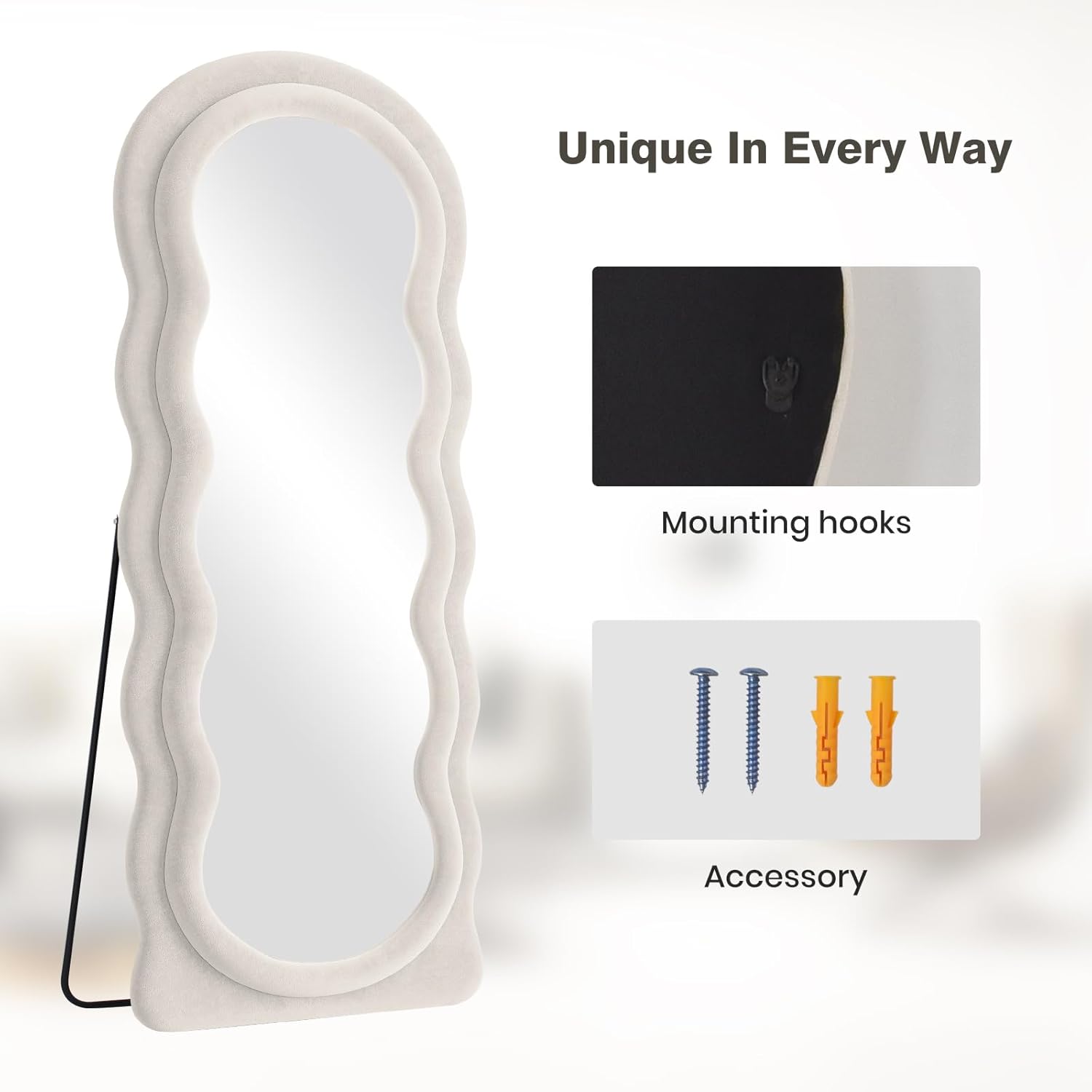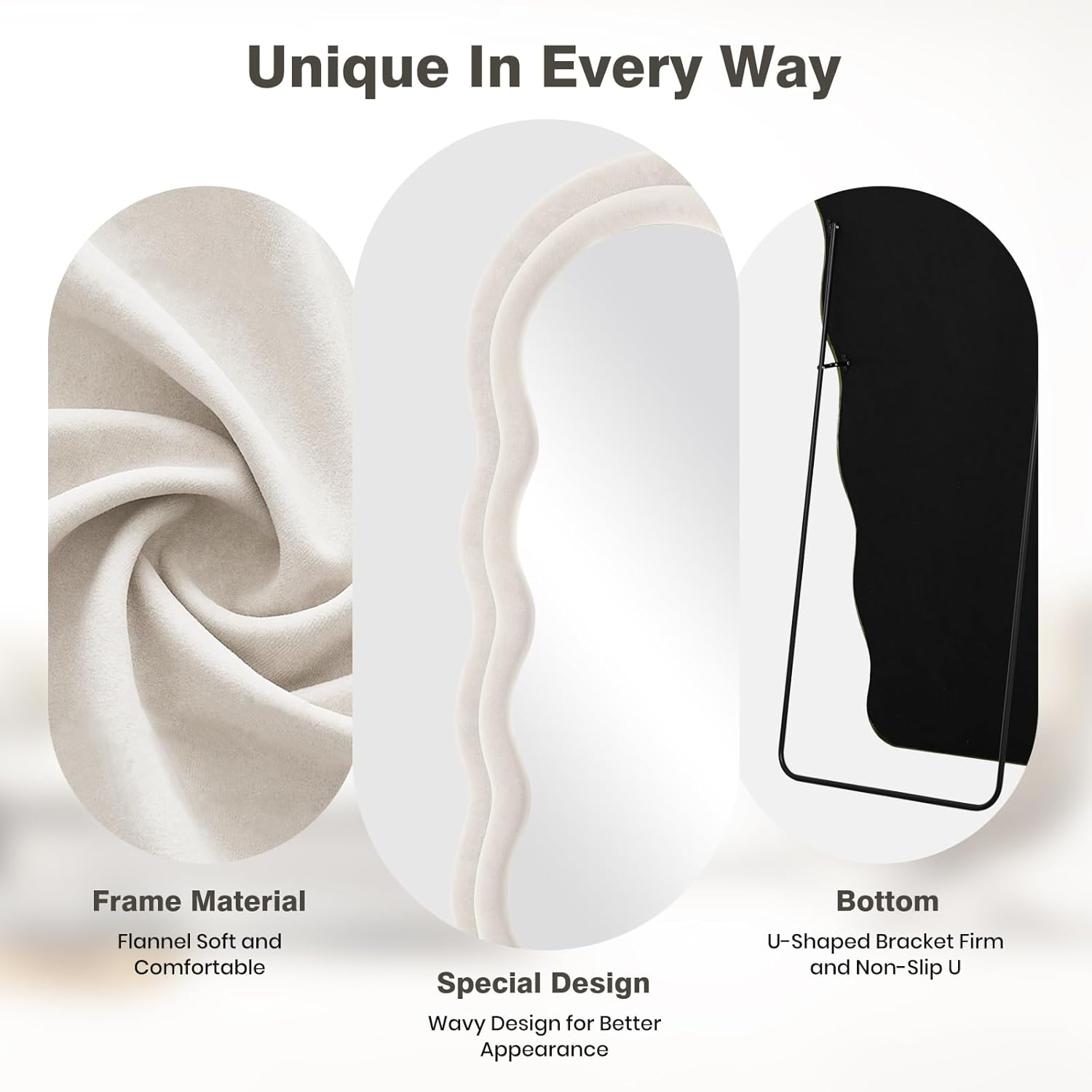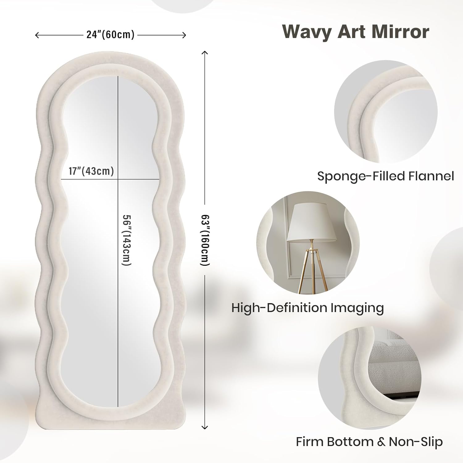 - White Flannel Irregular Wavy Frame Floor Mirror: The full length standing mirror features a modern style that can complement any type of room decor, adding a touch of elegance to your room. It will be a great wall decor art piece for your home. This full body mirror with sleek looking is also great for selfies or pictures in general