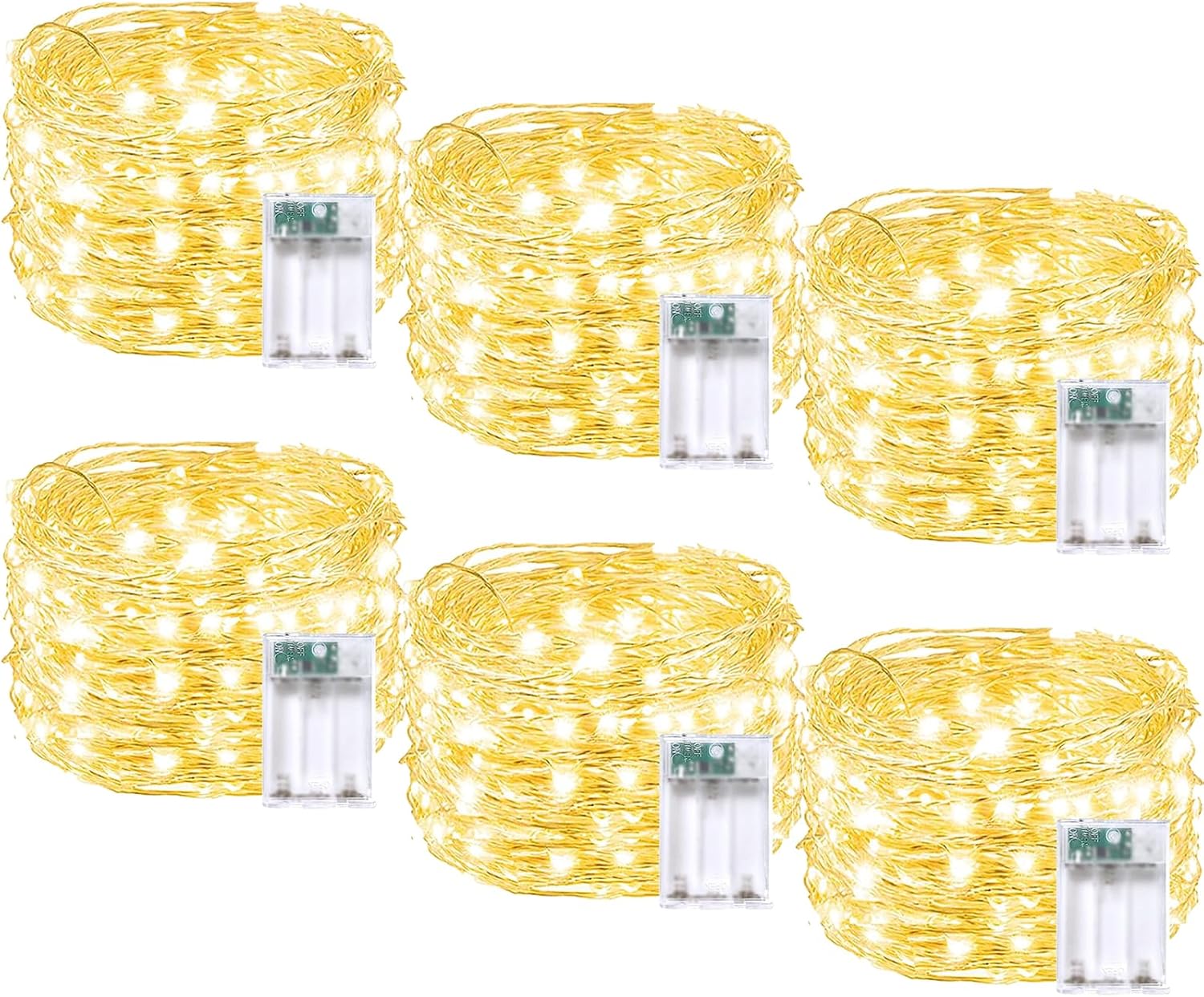 6 Pack Fairy Lights Battery Operated with Timer, Each 20FT 60LED Christmas String Lights Outdoor Indoor, Cuttable Battery Twinkle Light for Bedroom Home Wedding DIY Christmas Decorations (Warm White)