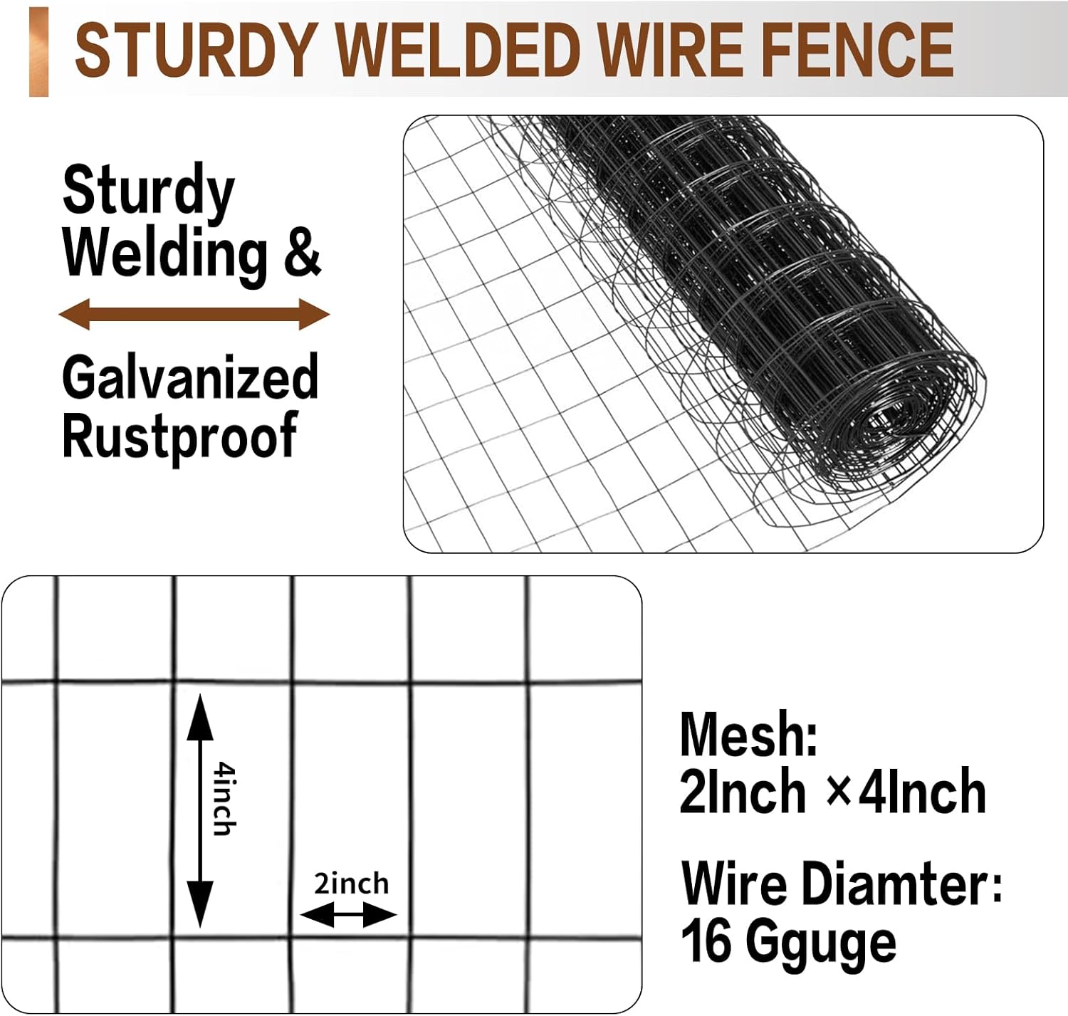- Sturdy Welded Wire Fence: This welded wire fence manufactured using advanced welding technology to ensure that each solder joint is strong and durable,features a 16GA wire diameter, with 2 inch x 4 inch mesh openings, sturdy enough to effectively protect your yard and poultry safety.