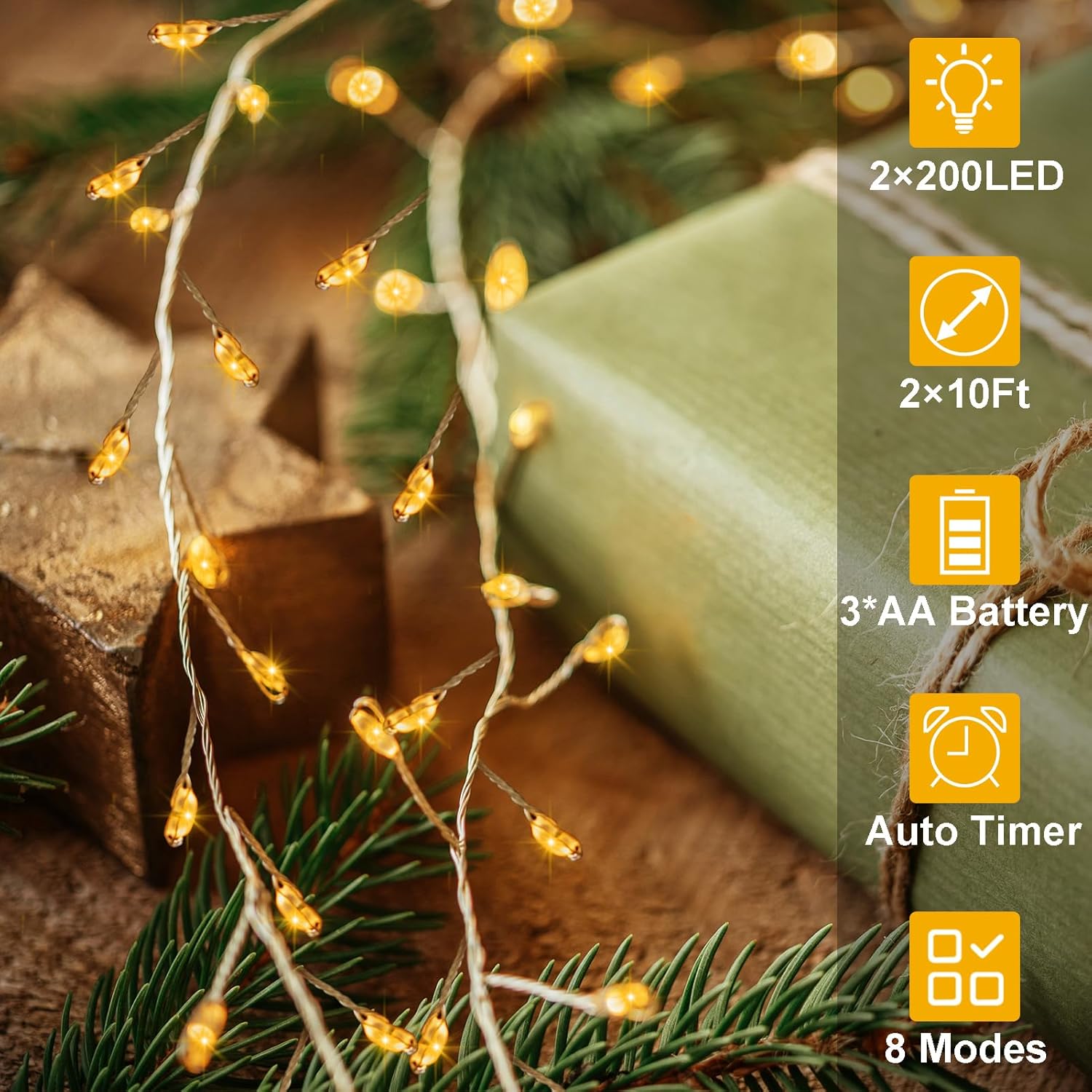- Firecracker Fairy Lights: Size: 2 Packร10ft 200LEDs. Silver wire fairy lights with unique firecracker shapes and dazzling lights create a charming festive atmosphere to room decoration