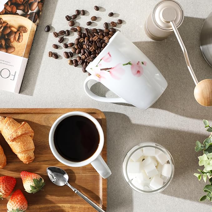 - ELEGANT MUG DESIGN: Embrace modern sophistication with our pristine white mugs adorned with pink floral. Elevate your sipping experience