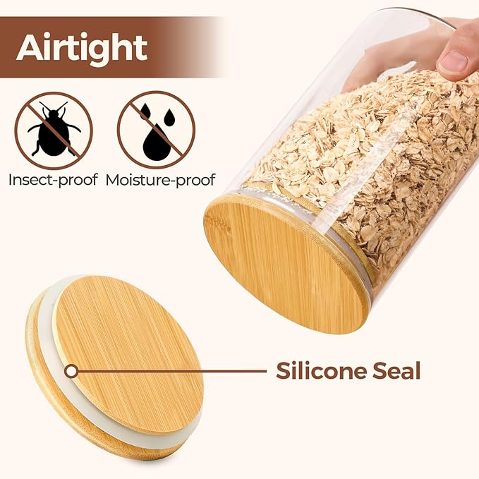 - Versatile Glass Canisters: Experience the versatility of 6 pieces glass food containers; ideal for storing cereals, cookie, snacks, nuts, oat, or even can use these glass jars as candy jar, bath salt jar, spice jar, sugar coffee containers