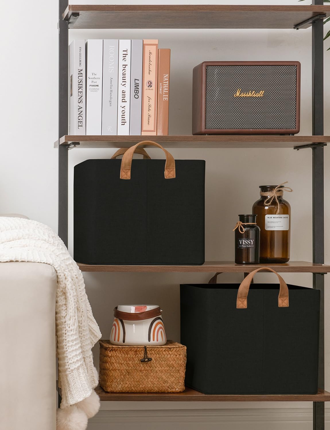 StorageWorks Storage Bins, Fabric Storage Bins for Shelves, Large Storage Baskets with Metal Frame, Closet Baskets and Bins with Handles, Black, 2-Pack