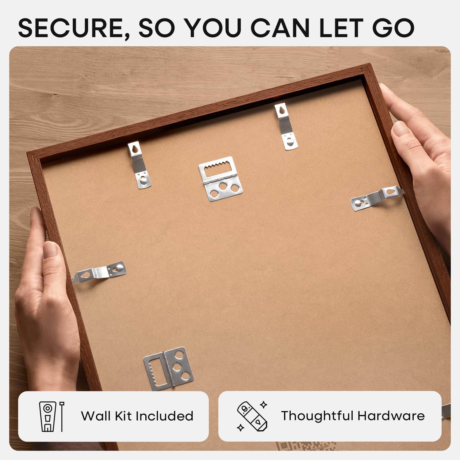 Homeforia Walnut Picture Frame 16x24, High End Dark Oak 16x24 Brown Wooden Frames with Mat 12x18, 16 x 24 Wood Poster Frame Matted to 12 by 18, 24x16 Hanging Frames, Tempered Glass, Wall Kit, Set of 1