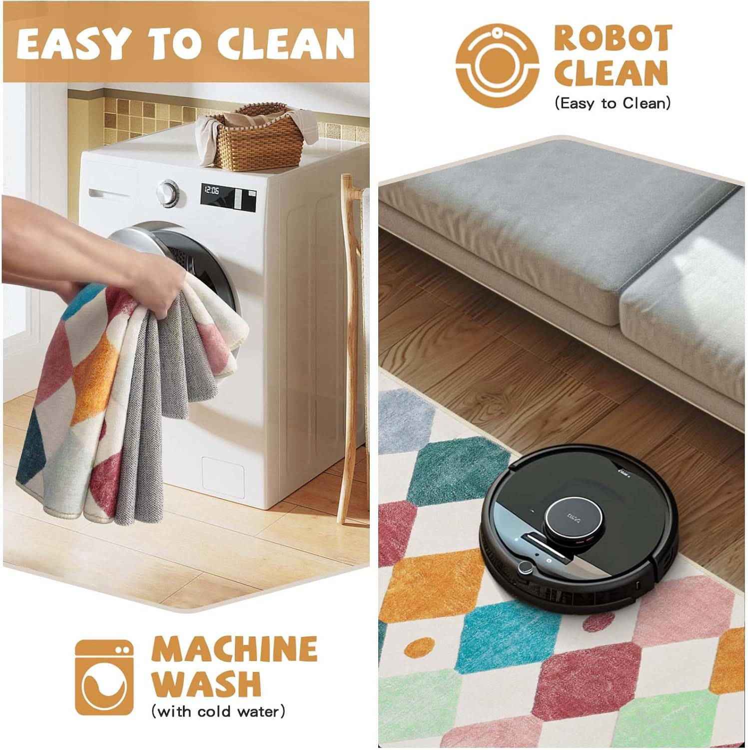 - Warm Vintage Colorful Design: Adorned with delightful diamond lattice splicing pattern against a soft cream bottom, this rug adds a playful charm to children's rooms and infuses vitality into adult spaces
