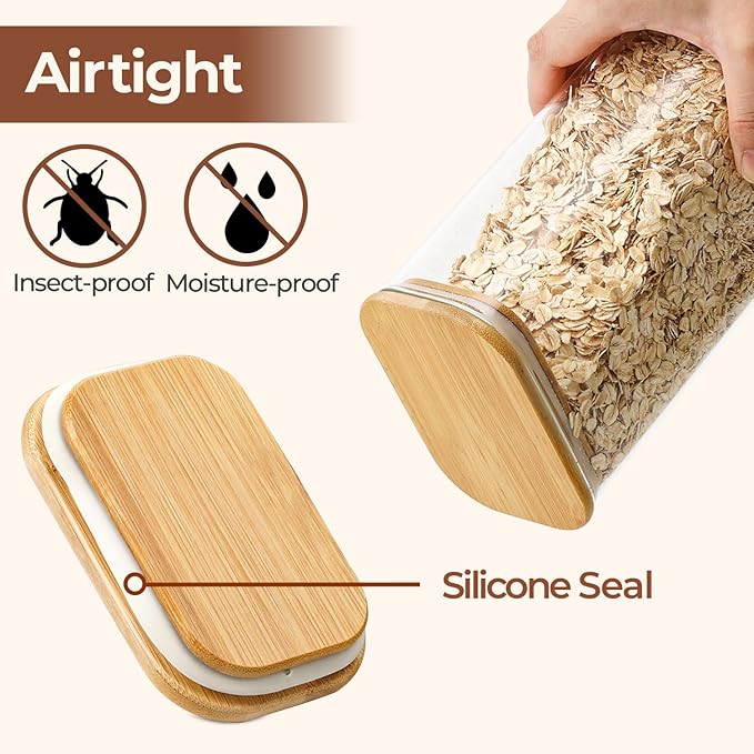 - Airtight Food Jar: The square pasta storage containers use wood lids and silicone sealing rings for a better airtight and moisture-resistant space to prevent the food from getting wet and gain longer freshness time and longer storage time