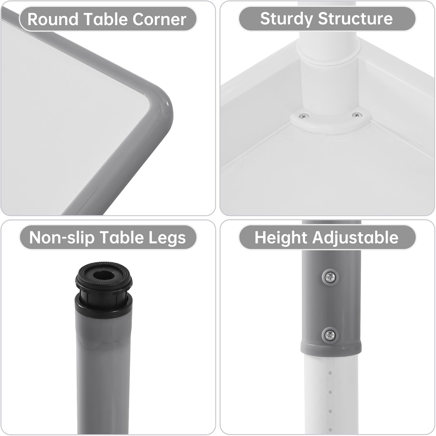 - 【INTIMATE DESIGN】: The edge of the movable table is slightly raised to prevent stationery from falling. The corners are curved to minimize the risk of collision and injury for children.Foldable design makes it easy to store and transport, perfect for both indoor and outdoor use.Non-slip legs ensure stability and prevent accidents during active play, providing peace of mind for parents.