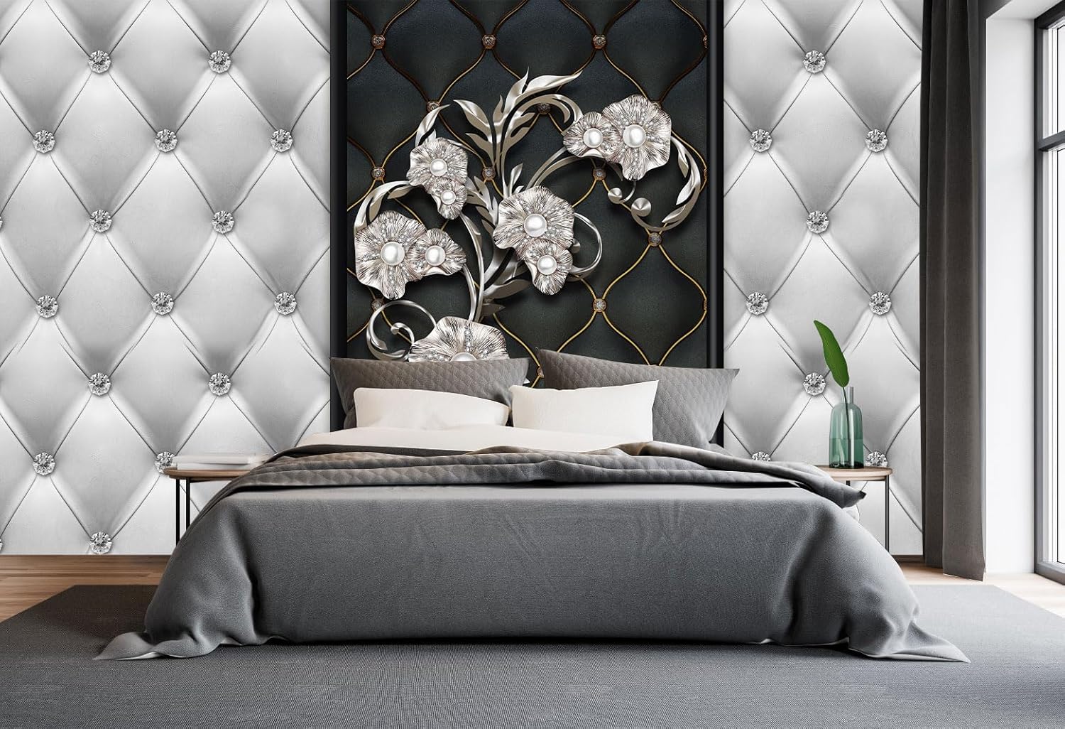 Black and White 3D Diamond Soft Case Faux Leather Wall Mural Wallpaper for Bedroom Living Room Tv Background (Not Peel and Stick)