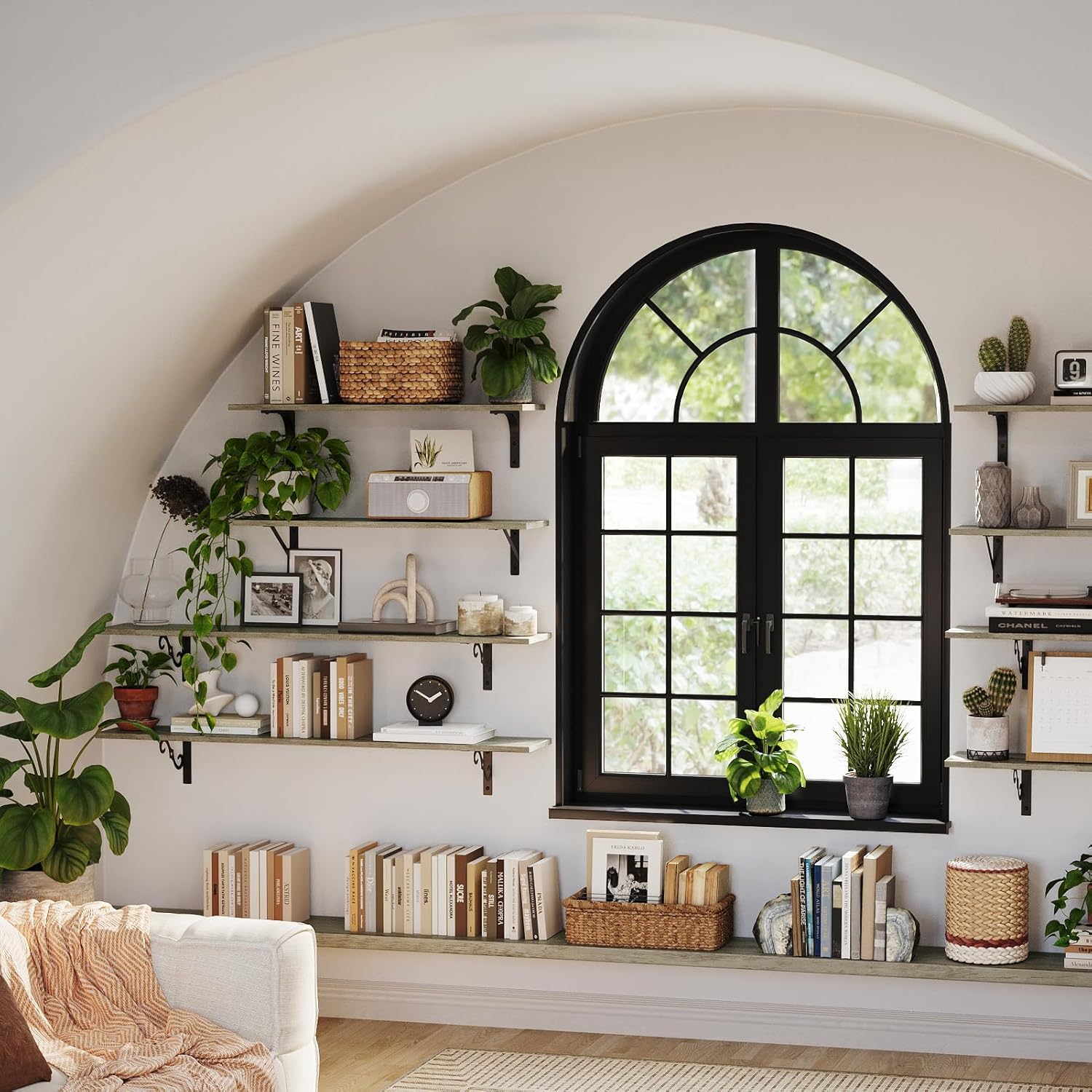 • 【Add Finishing Touch to Space】Mid-century design adds a retro-chic vibe to your home. Rusticity wood grain and exquisite S-shaped iron brackets flaunt visual interest and romance. They are full of character and enhance the texture of the space. A classy way to display your beloved decorations