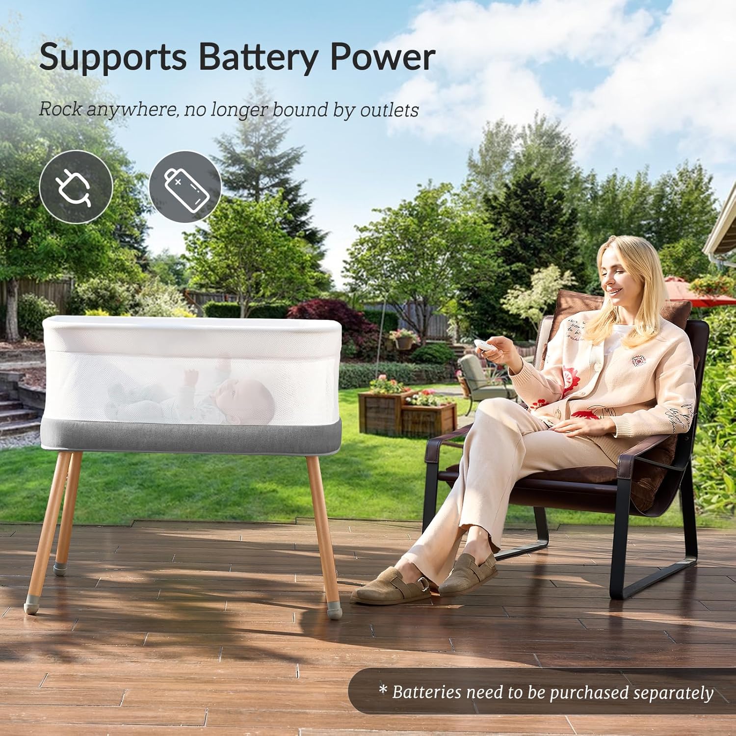 Electric Bassinet for Baby 3 Rocking Speeds, Auto Bedside Sleeper with 8 Soothing Music, Rocking Bassinet for Infant, Grey