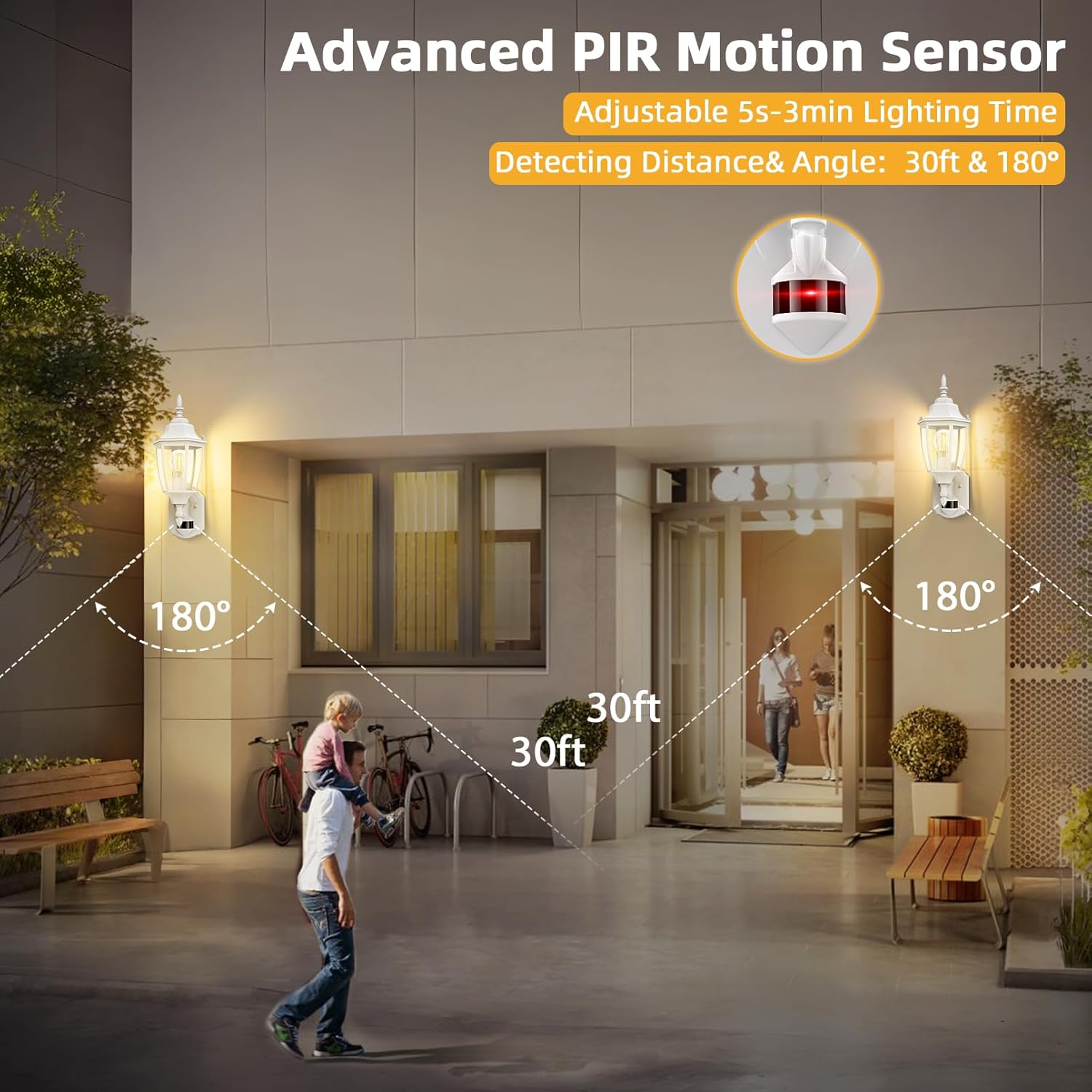 - Wide Detected Range & Compatible With E26 Bulbs: Our motion sensor wall lanterns can be easily triggered by moving people, cars or animals. The detection distance of sensor is from 0 to 30 feet. Bulbs are not included in the package