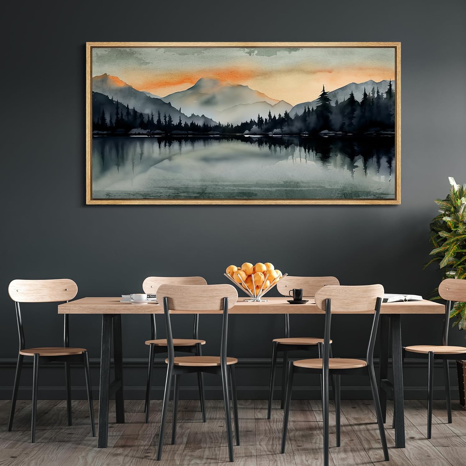 MUDECOR Extra Large Framed Canvas Print Wall Art Sunset Mountain Range and Lake Panoramic Antique Retro Fine Art Illustrations Decorative Colorful for Bedroom - 60"x30"