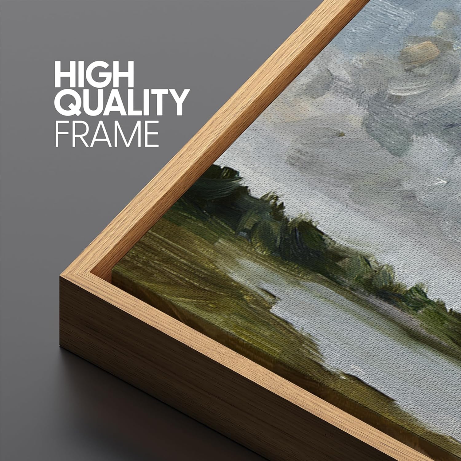 MUDECOR Extra Large Framed Canvas Print Wall Art Tranquil Landscape Soft Brushstroke Lake Scene Illustrations Antique Retro Fine Art Illustrations Decorative Colorful for Bedroom - 60"x30"
