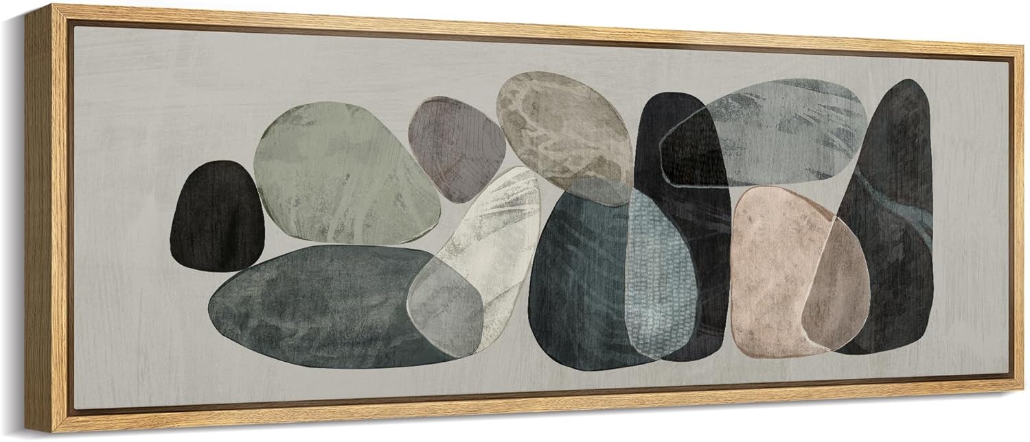 MUDECOR Large Framed Canvas Print Wall Art Abstract Elegance Contemporary Stone Shapes Illustrations Antique Retro Fine Art Illustrations Decorative Colorful for Bedroom - 60"x20"