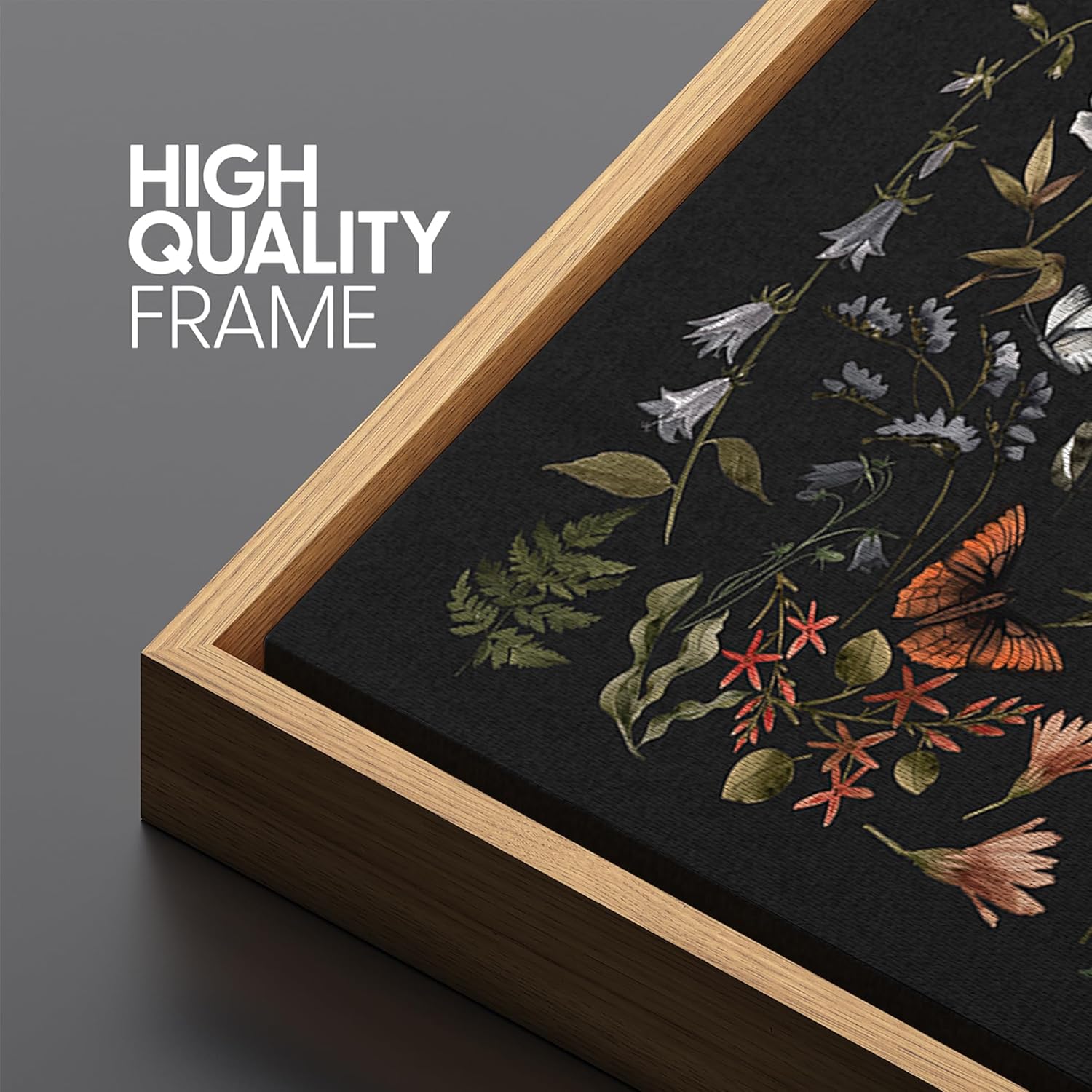 MUDECOR Extra Large Framed Canvas Print Wall Art Midnight Garden Vintage Floral Illustrations Antique Retro Fine Art Illustrations Decorative Colorful for Bedroom - 60"x30"