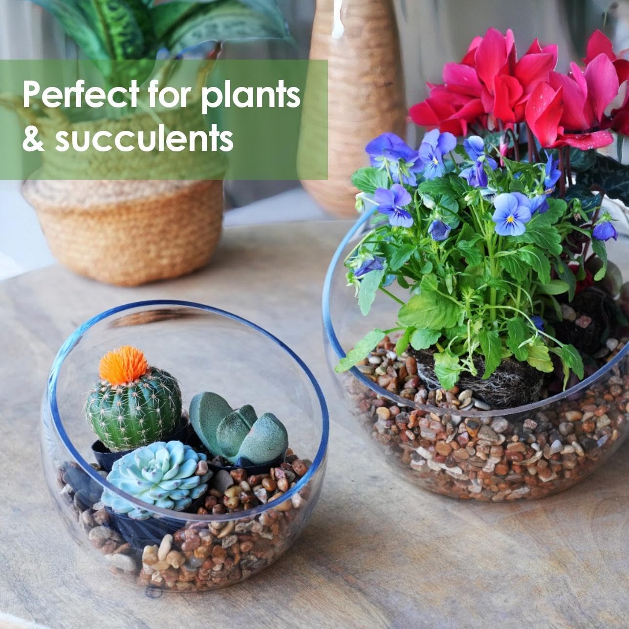 Craft And Party, Slantted Glass Cut Bubble Bowl, 6" Height x 7" Width Slantted Bubble vase for Terraium, Flower vase Centerpiece, Set of 4